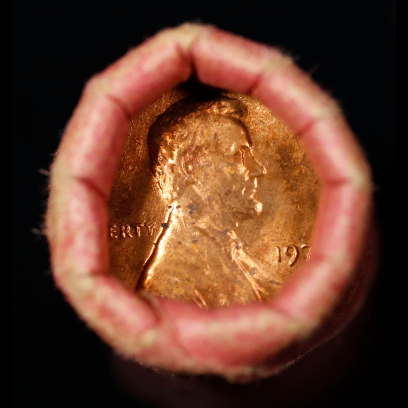 Shotgun Lincoln 1c roll, 1973-d 50 pcs Steel strong Wrapper.. A terrific Shotgun roll of Lincoln cents. Most if not all coin should be cherry red.