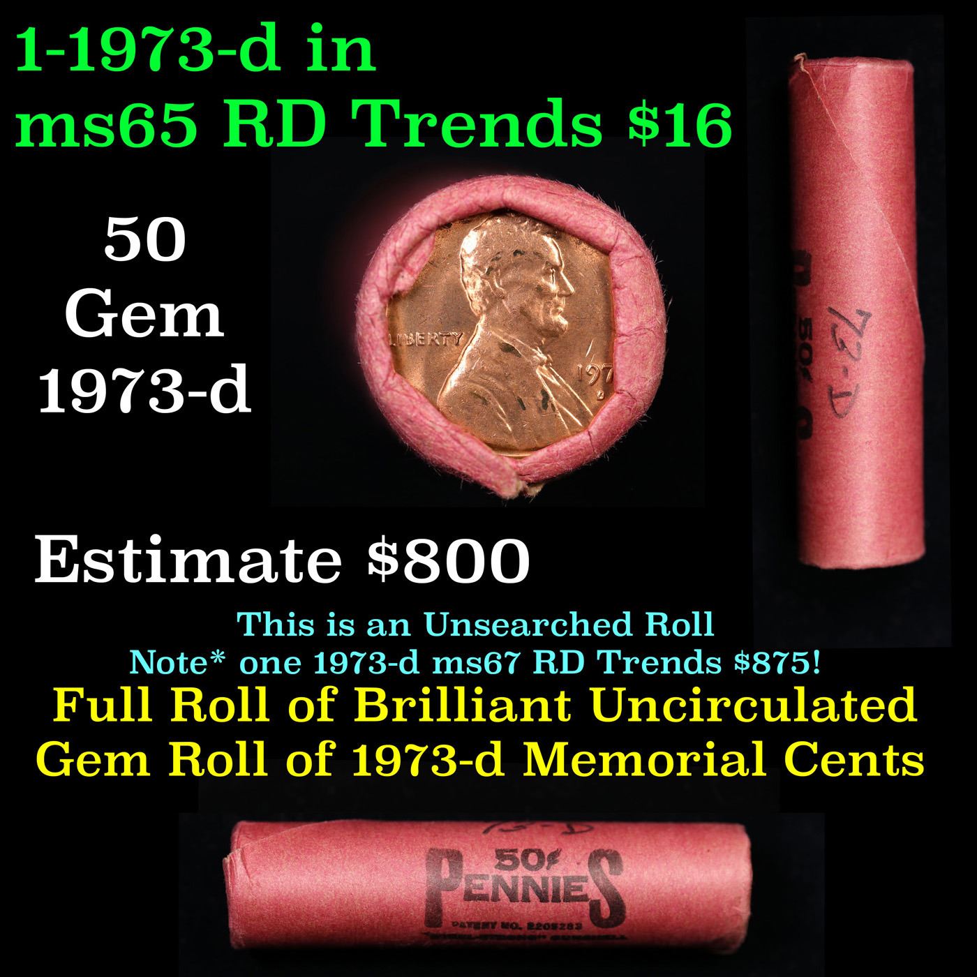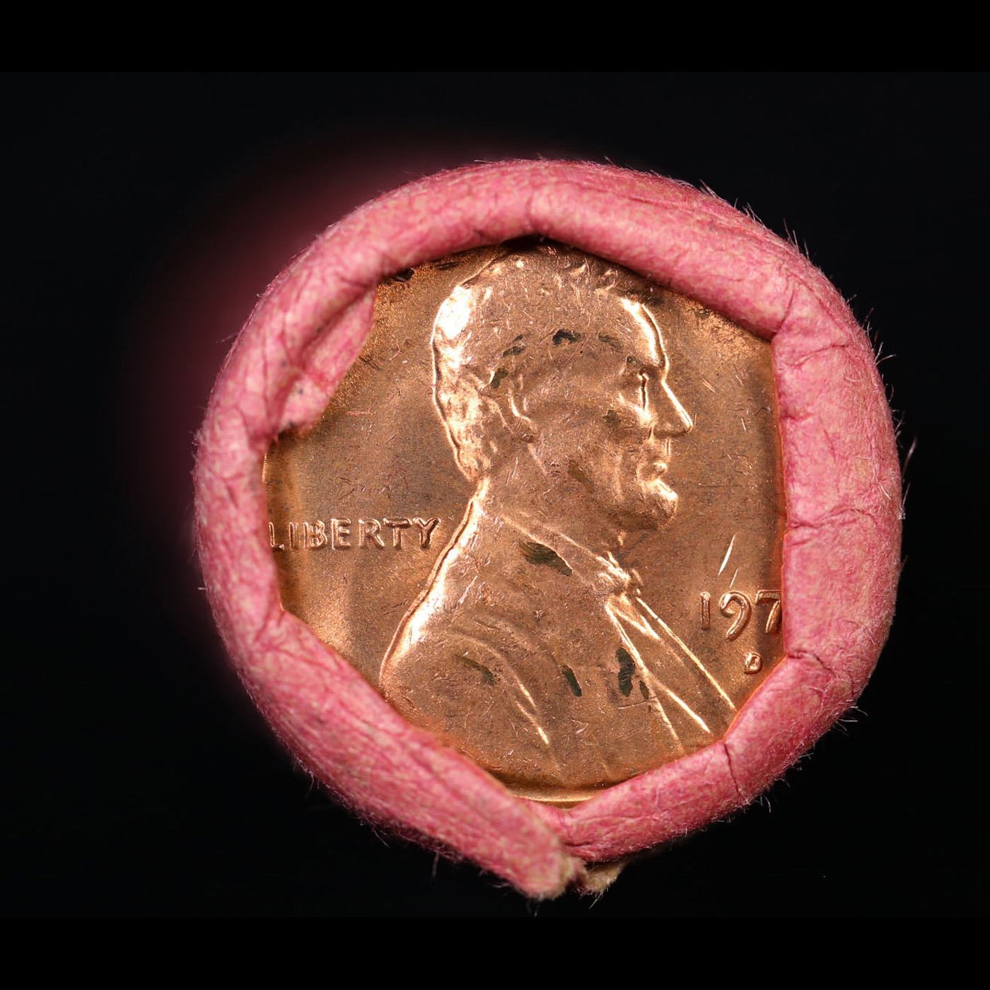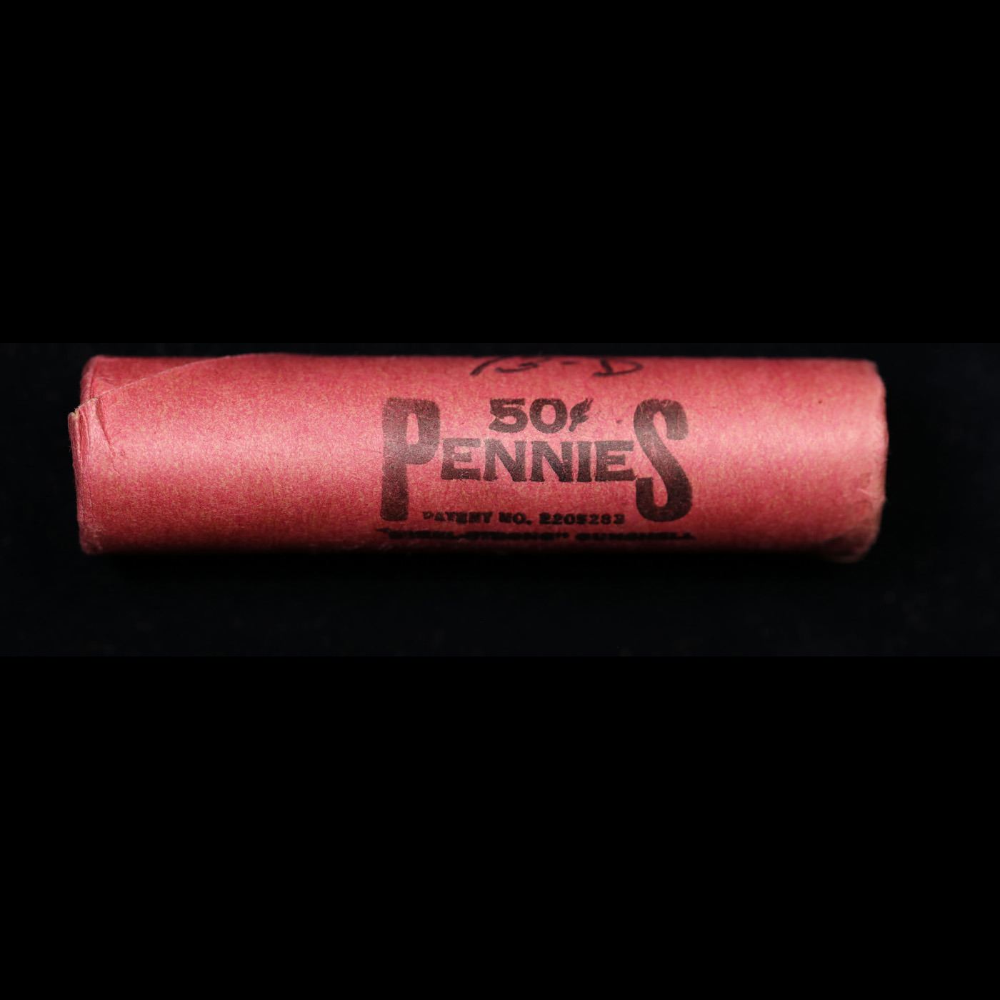 Shotgun Lincoln 1c roll, 1973-d 50 pcs Vintage "Steel-Strong" Tubular Wrapper.. A terrific Shotgun roll of Lincoln cents. Most if not all coin should be cherry red. Trends ms65 rd $16