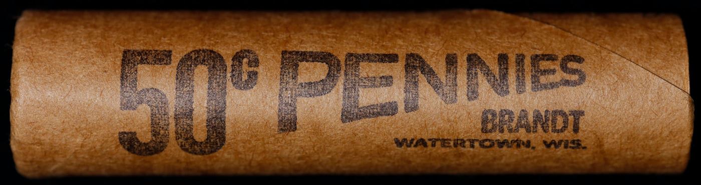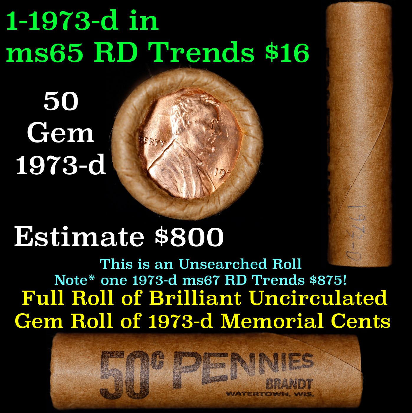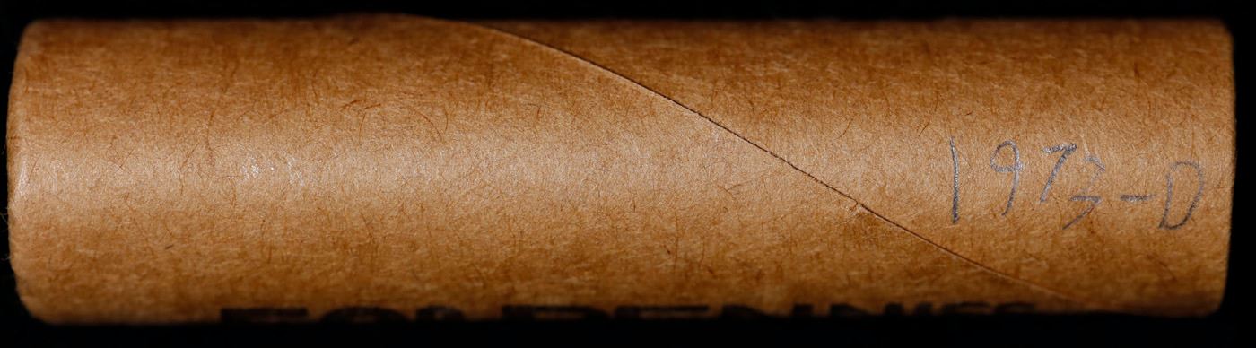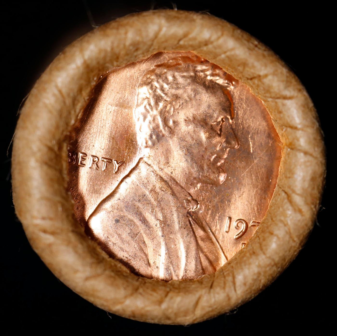 Shotgun Lincoln 1c roll, 1973-d 50 pcs Wrapper . A terrific Shotgun roll of Lincoln cents. All coins cherry red. Trends ms65 rd $16