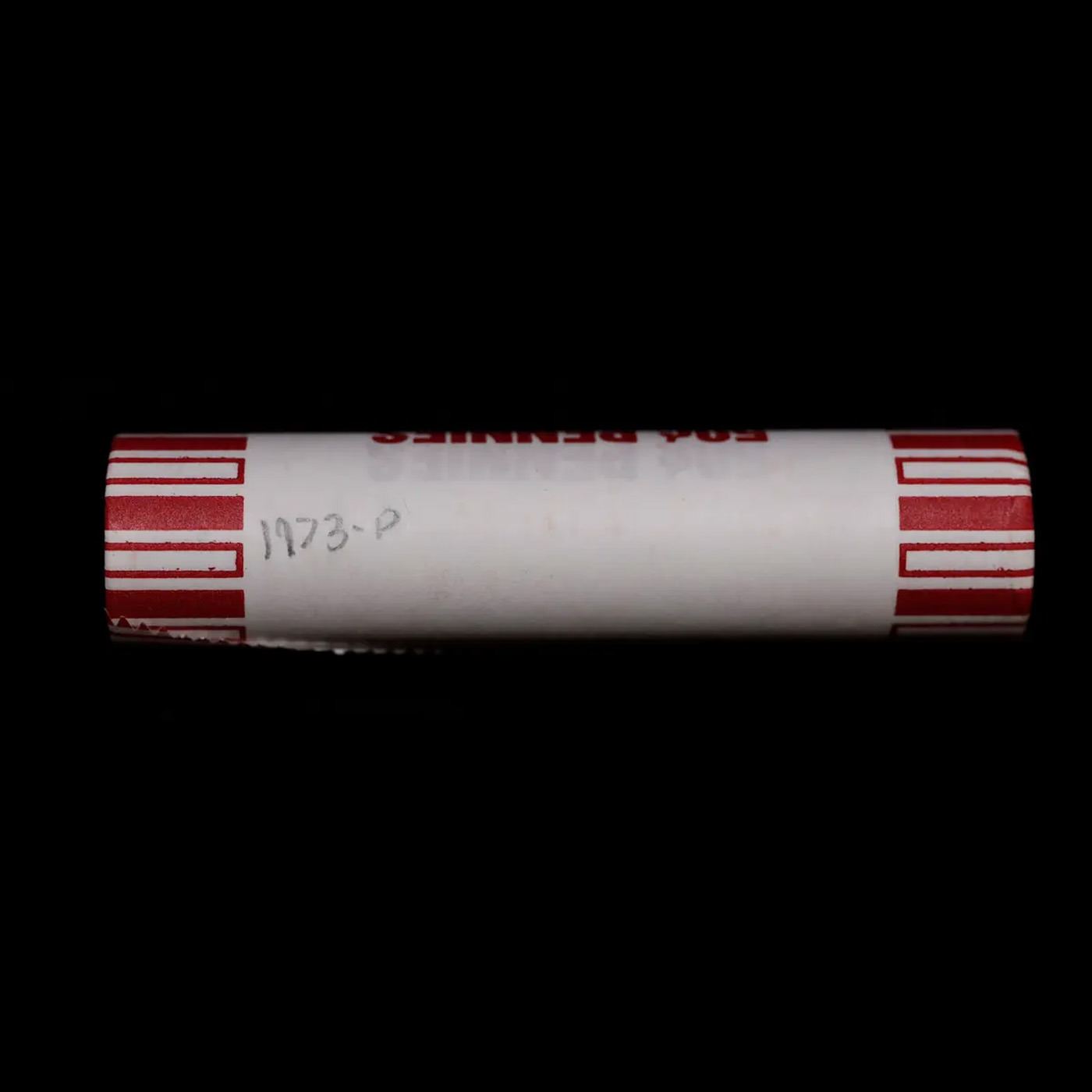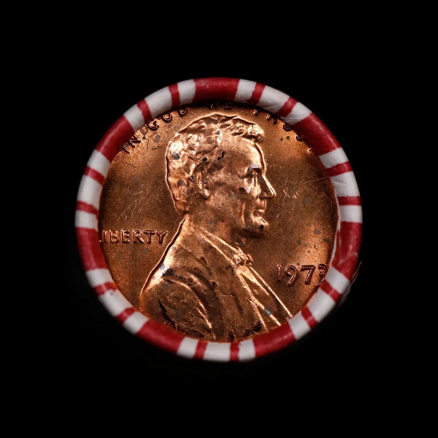 Shotgun Lincoln 1c roll, 1973-p 50 pcs Bank 50c Wrapper.. A terrific Shotgun roll of Lincoln cents. Most if not all coin should be cherry red.