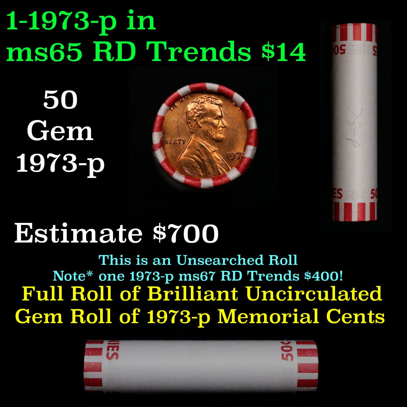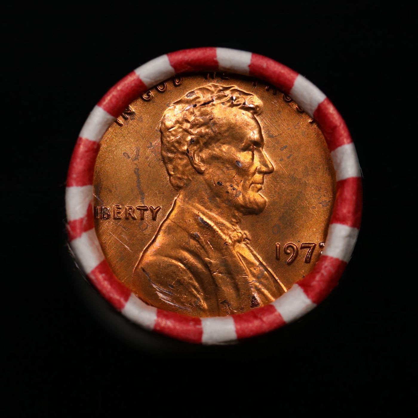 Shotgun Lincoln 1c roll, 1973-p 50 pcs Bank Wrapper.. A terrific Shotgun roll of Lincoln cents. Most if not all coin should be cherry red.