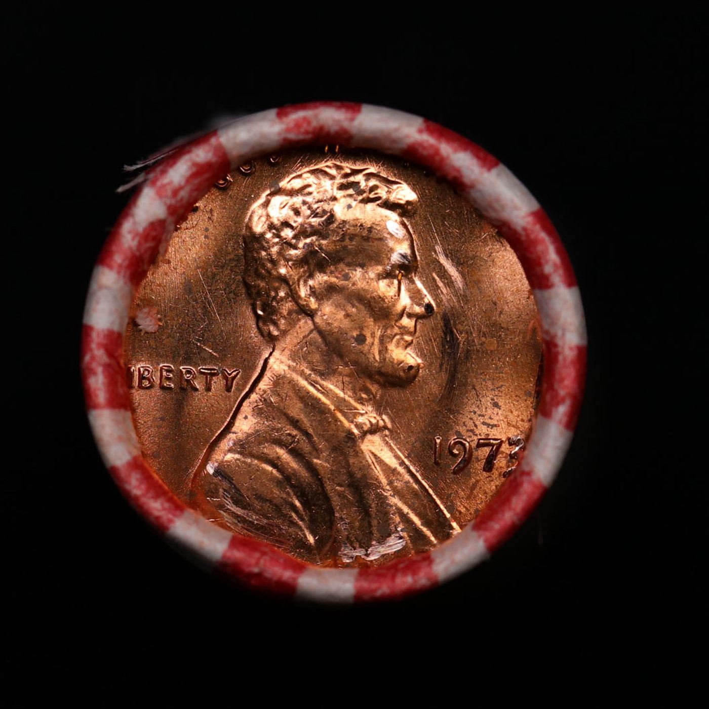 Shotgun Lincoln 1c roll, 1973-p 50 pcs Bank Wrapper.. A terrific Shotgun roll of Lincoln cents. Most if not all coin should be cherry red.