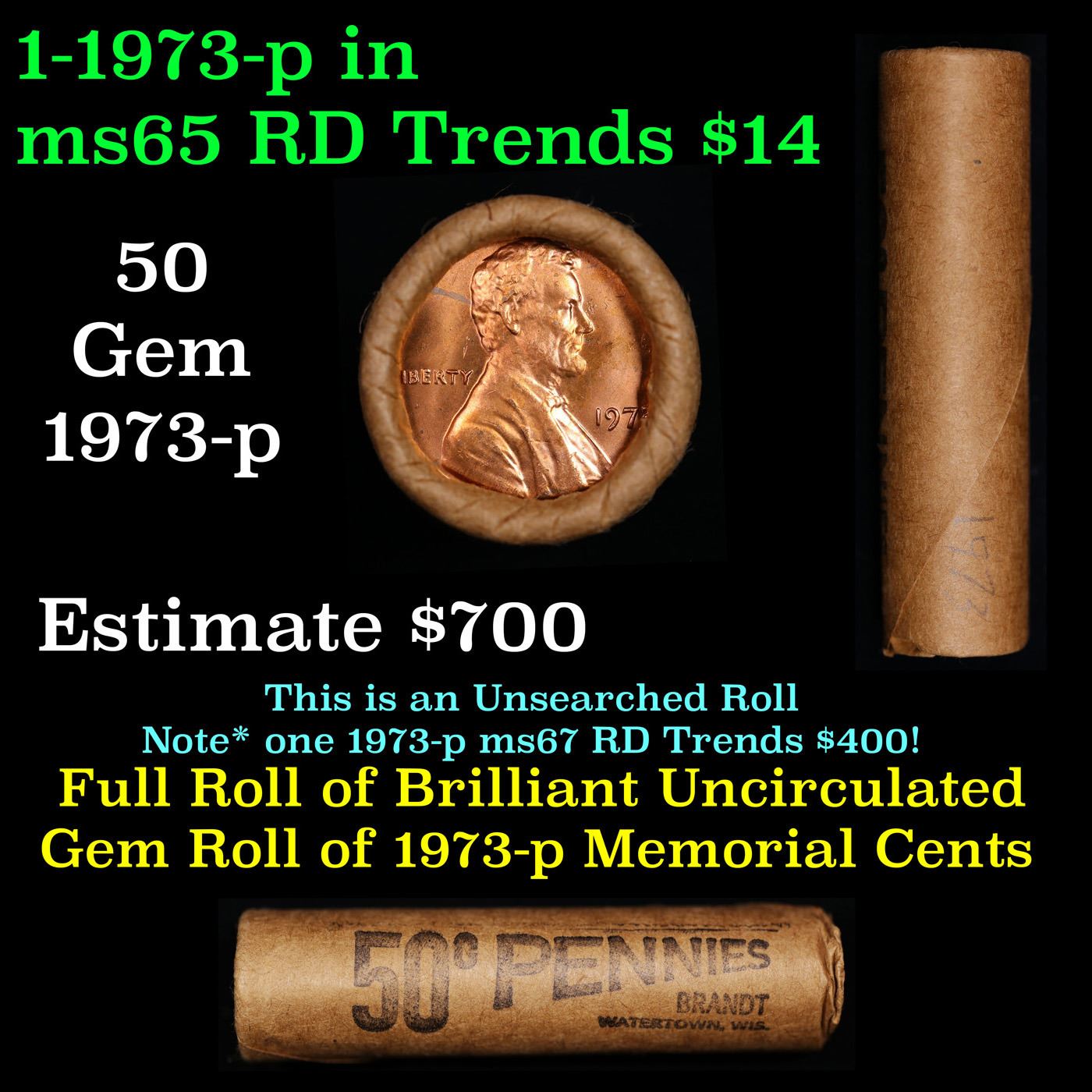 Shotgun Lincoln 1c roll, 1973-p 50 pcs Brandt Wrapper .