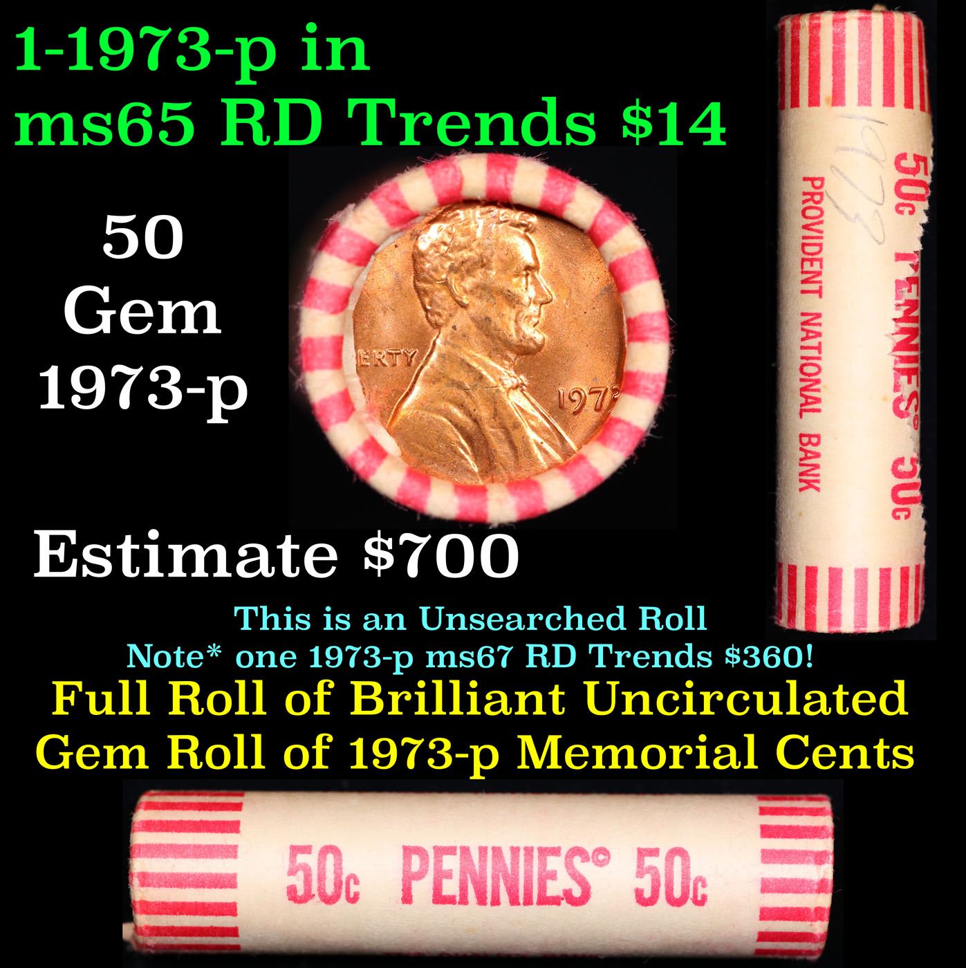 Shotgun Lincoln 1c roll, 1973-p 50 pcs Provident National Bank Wrapper . A terrific Shotgun roll of Lincoln cents. Trends ms65 rd $14