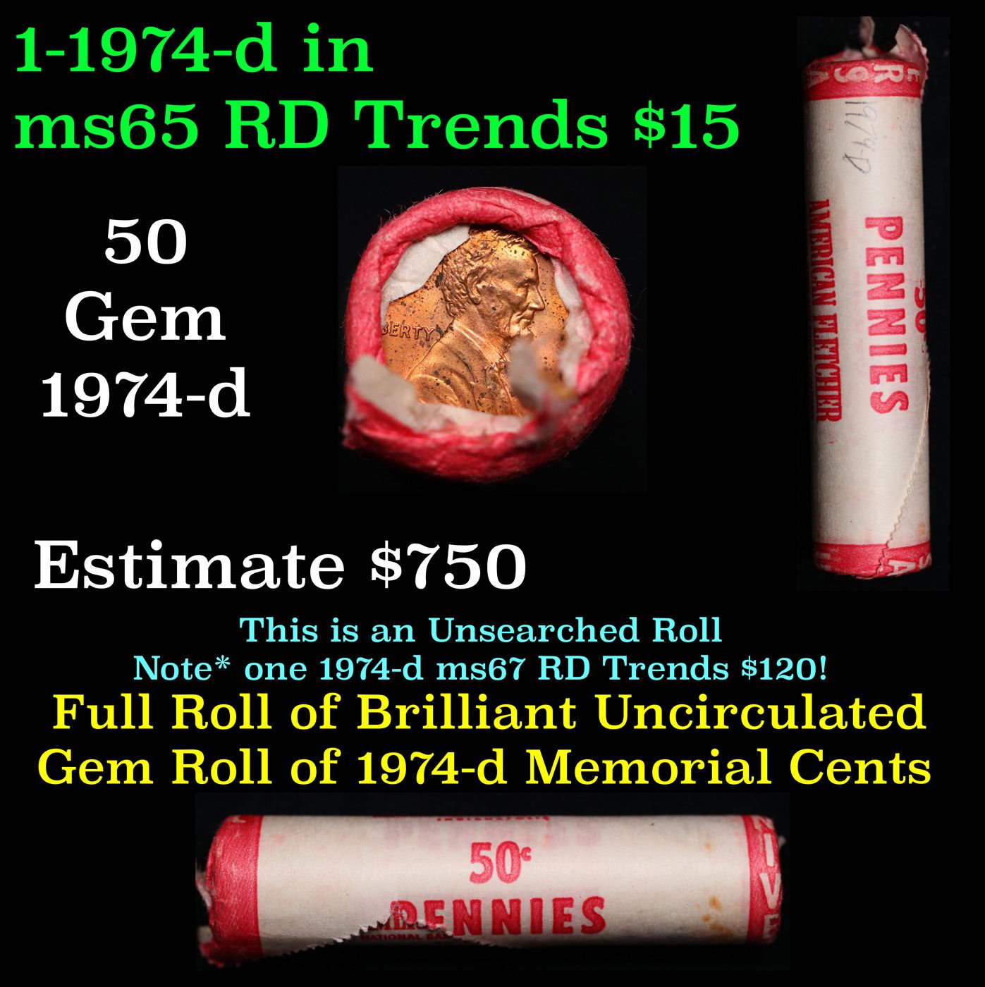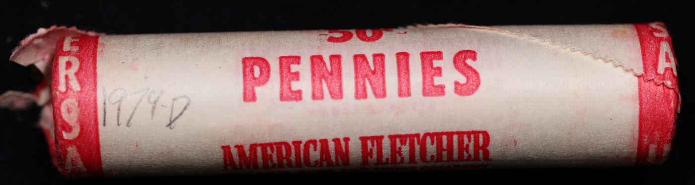 Shotgun Lincoln 1c roll, 1974-d 50 pcs American Fletcher Wrapper.. A terrific Shotgun roll of Lincoln cents. Most if not all coin should be cherry red.