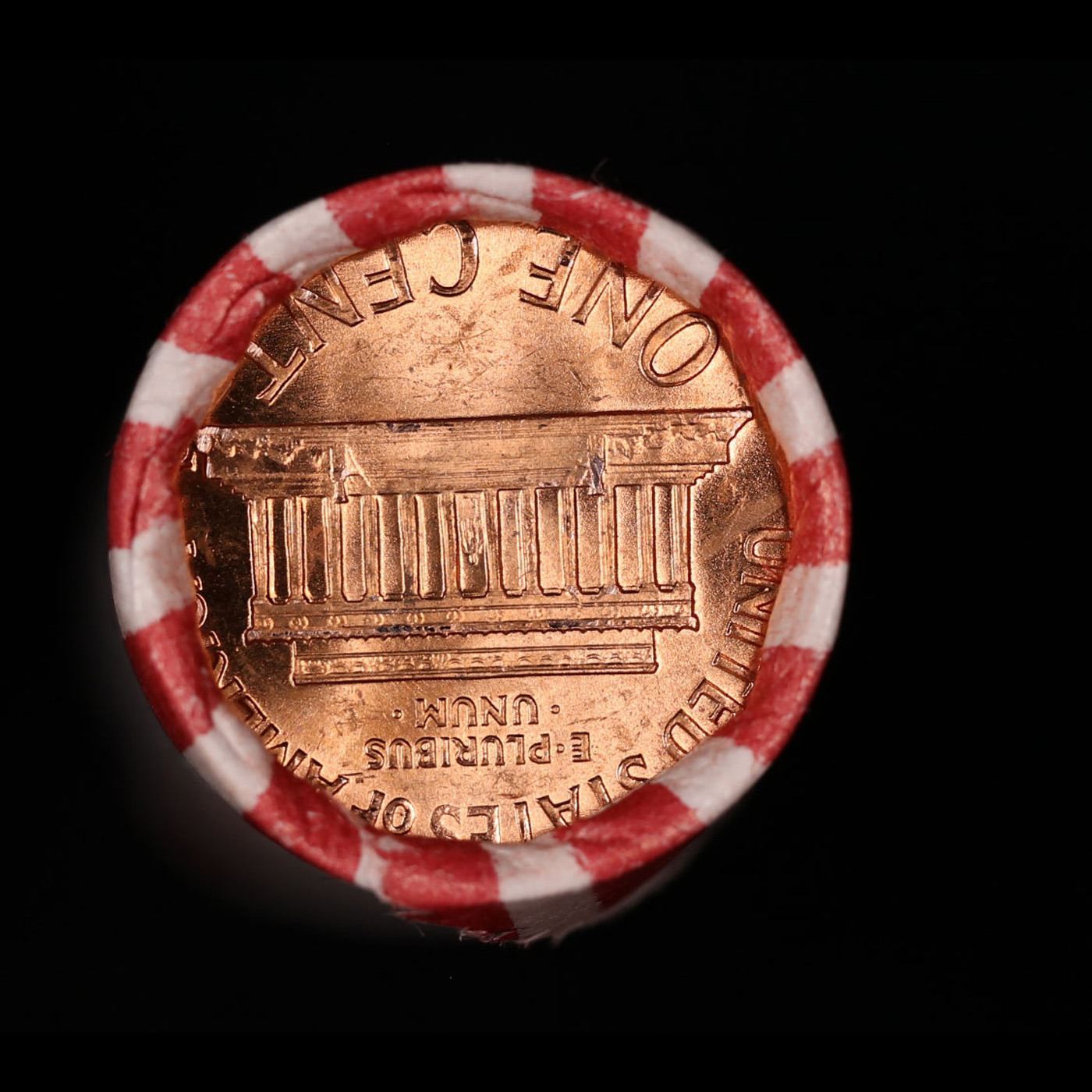 Shotgun Lincoln 1c roll, 1974-d 50 pcs Bank Wrapper.. A terrific Shotgun roll of Lincoln cents. Most if not all coin should be cherry red.
