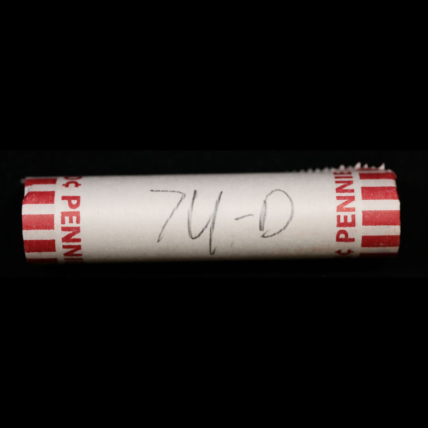 Shotgun Lincoln 1c roll, 1974-d 50 pcs Bank Wrapper.. A terrific Shotgun roll of Lincoln cents. Most if not all coin should be cherry red.