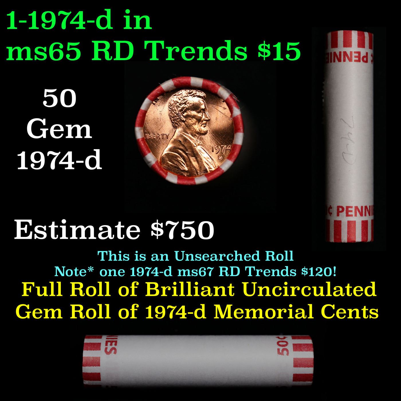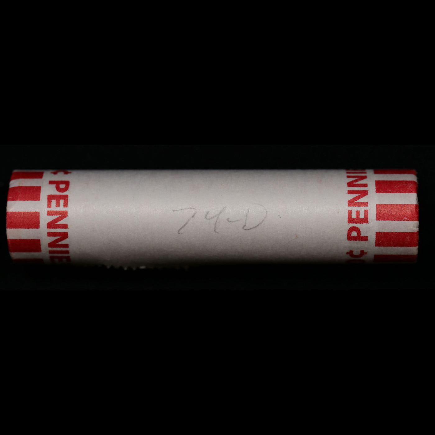 Shotgun Lincoln 1c roll, 1974-d 50 pcs Bank Wrapper.. A terrific Shotgun roll of Lincoln cents. Most if not all coin should be cherry red.