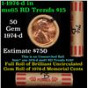 Shotgun Lincoln 1c roll, 1974-d 50 pcs Coin-Tainer Wrapper . A terrific Shotgun roll of Lincoln cents. All coins cherry red. Trends ms65 rd $15