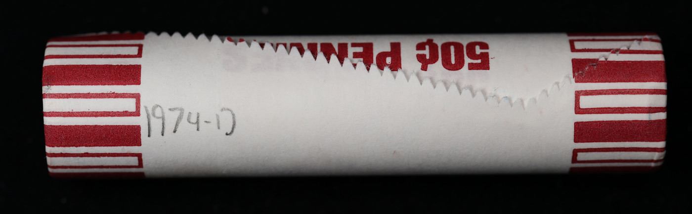 Shotgun Lincoln 1c roll, 1974-d 50 pcs Steel-Strong Wrapper.. A terrific Shotgun roll of Lincoln cents. Most if not all coin should be cherry red.