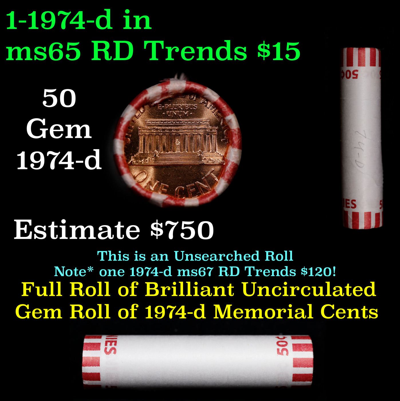 Shotgun Lincoln 1c roll, 1974-d 50 pcs Steel-Strong Wrapper..