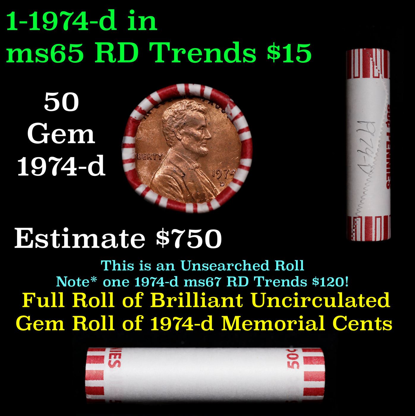 Shotgun Lincoln 1c roll, 1974-d 50 pcs Steel-Strong Wrapper.