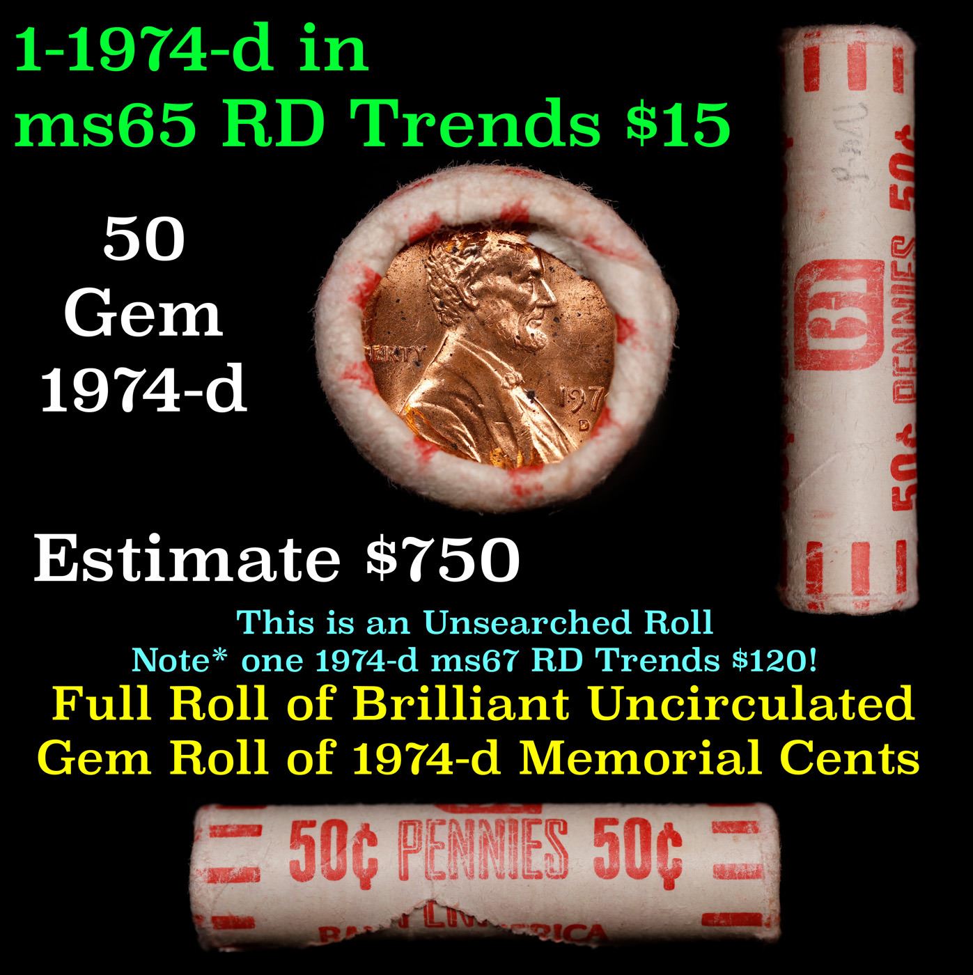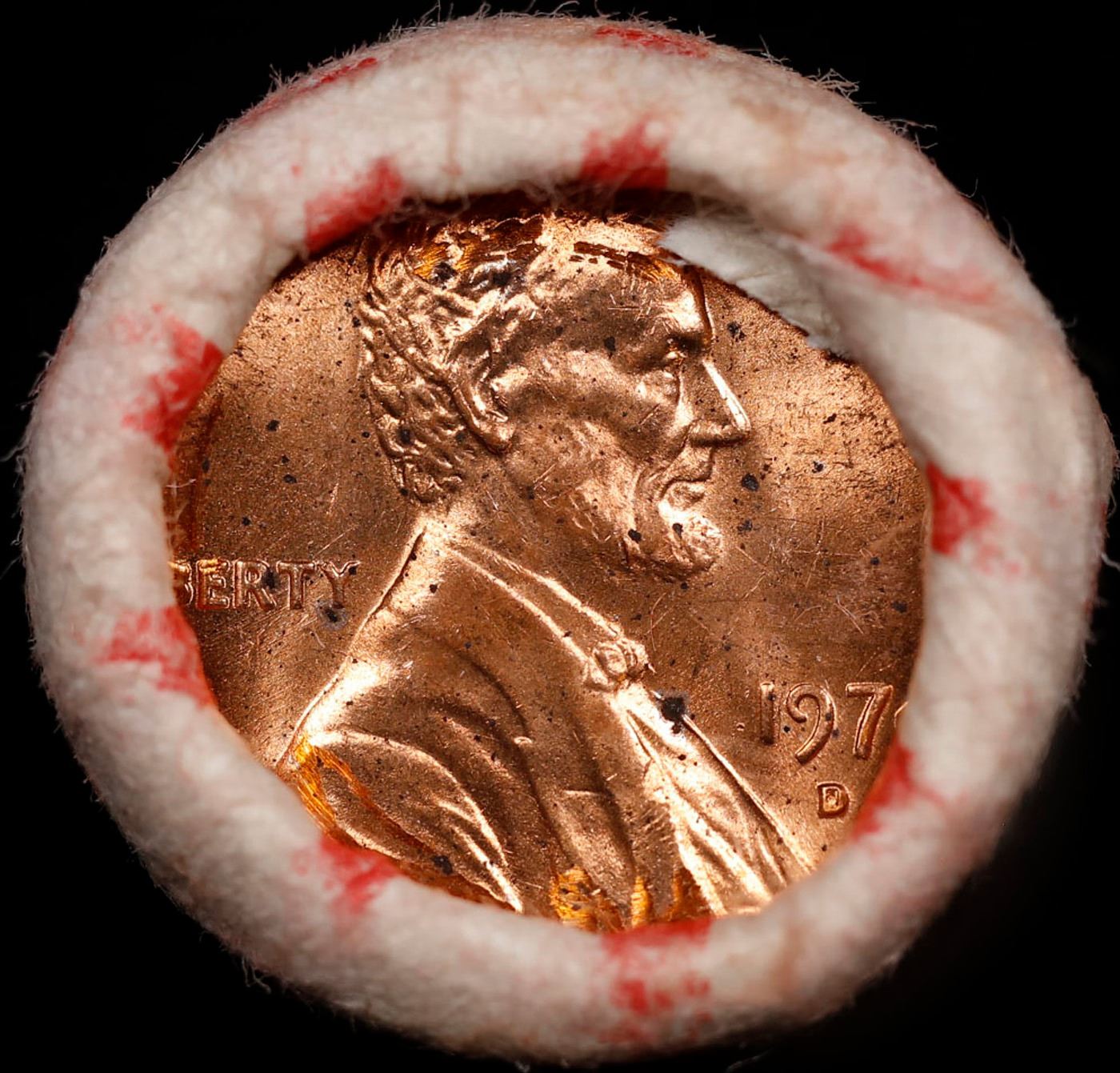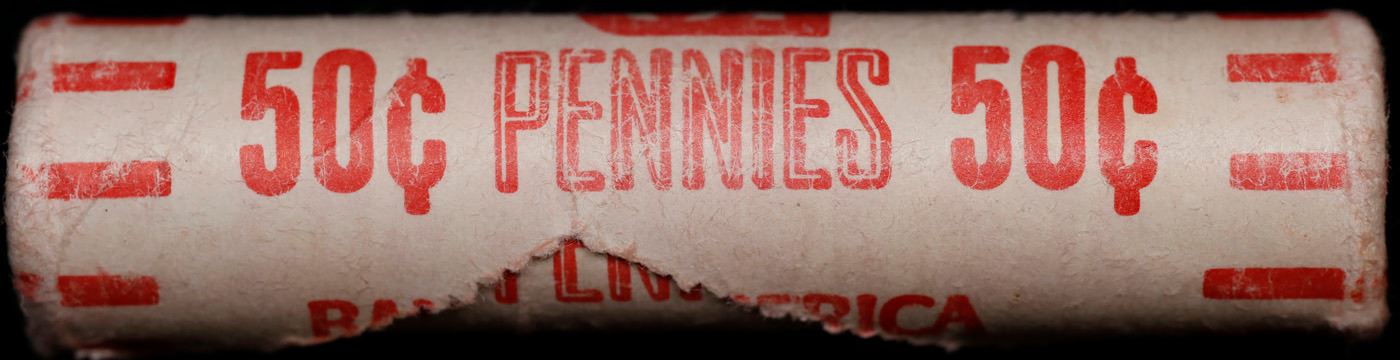 Shotgun Lincoln 1c roll, 1974-d 50 pcs Vintage Bank OF America Wrapper.. A terrific Shotgun roll of Lincoln cents. Most if not all coin should be cherry red.
