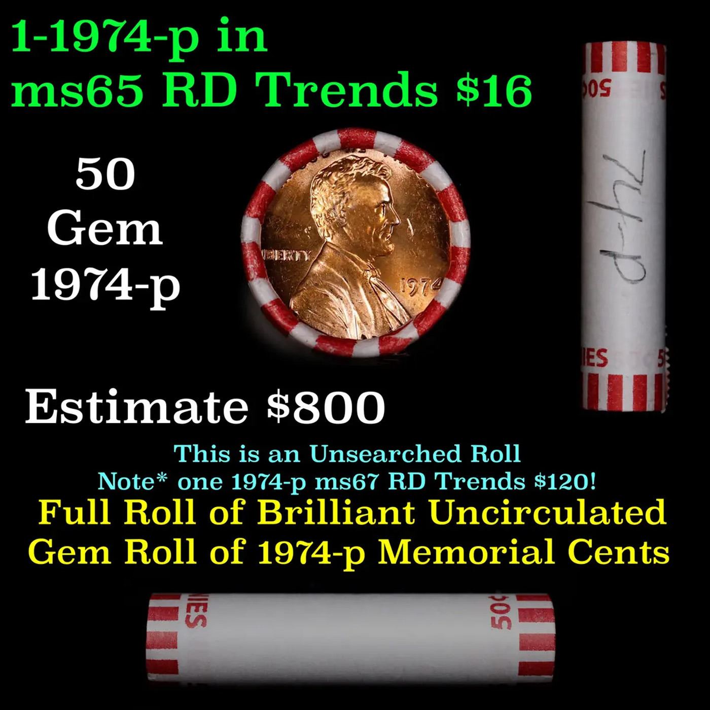 Shotgun Lincoln 1c roll, 1974-p 50 pcs Bank 50c Wrapper.. A terrific Shotgun roll of Lincoln cents. Most if not all coin should be cherry red.