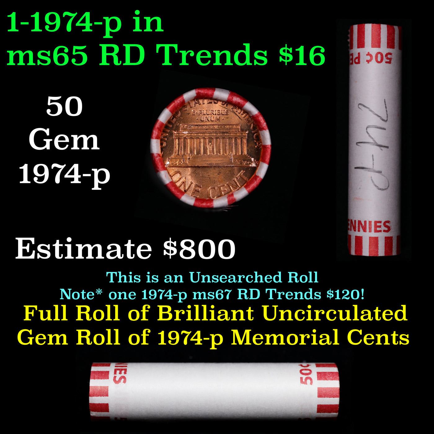 Shotgun Lincoln 1c roll, 1974-p 50 pcs Bank Wrapper.. A terrific Shotgun roll of Lincoln cents. Most if not all coin should be cherry red.