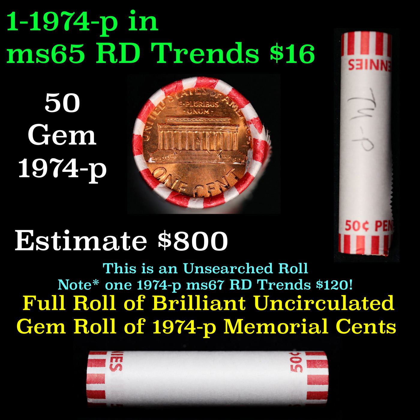 Shotgun Lincoln 1c roll, 1974-p 50 pcs Bank Wrapper.. A terrific Shotgun roll of Lincoln cents. Most if not all coin should be cherry red.