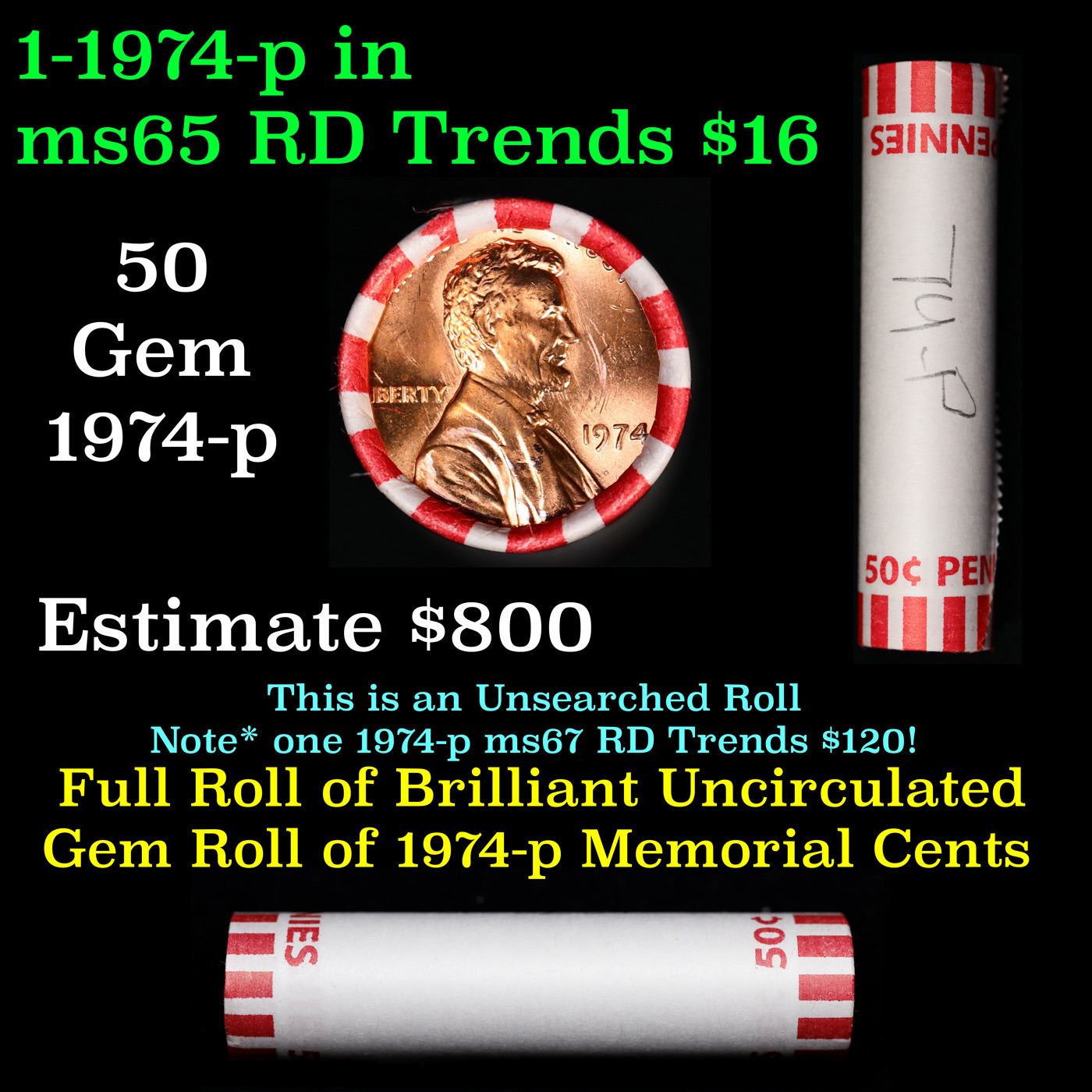 Shotgun Lincoln 1c roll, 1974-p 50 pcs Bank Wrapper.. A terrific Shotgun roll of Lincoln cents. Most if not all coin should be cherry red.