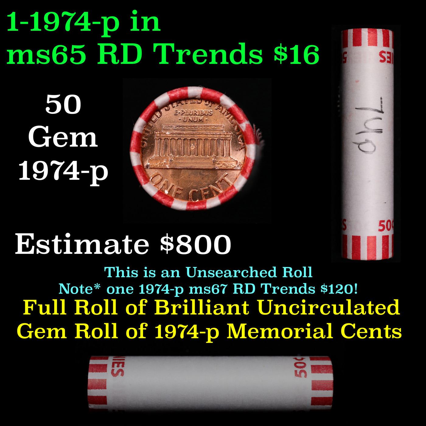 Shotgun Lincoln 1c roll, 1974-p 50 pcs Bank Wrapper.. A terrific Shotgun roll of Lincoln cents. Most if not all coin should be cherry red.