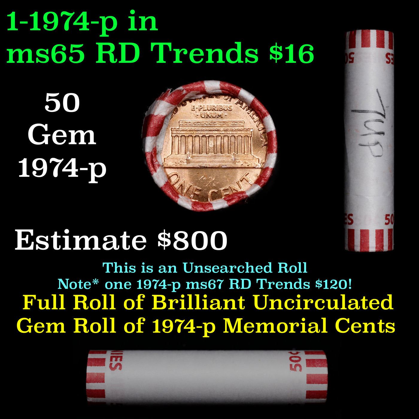 Shotgun Lincoln 1c roll, 1974-p 50 pcs Bank Wrapper.. A terrific Shotgun roll of Lincoln cents. Most if not all coin should be cherry red.