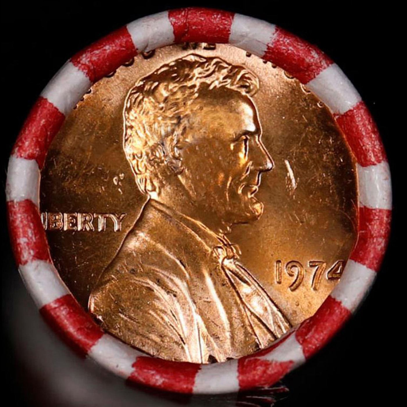 Shotgun Lincoln 1c roll, 1974-p 50 pcs Bank Wrapper.. A terrific Shotgun roll of Lincoln cents. Most if not all coin should be cherry red.