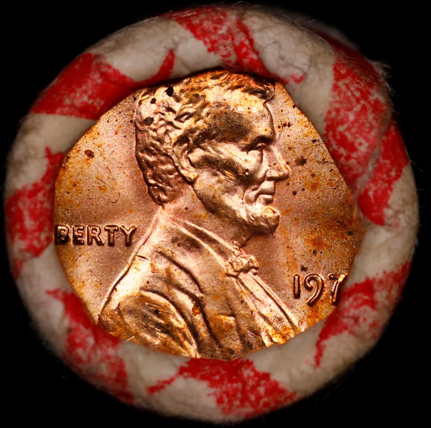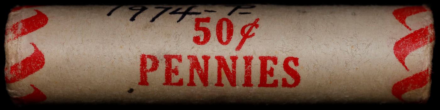Shotgun Lincoln 1c roll, 1974-p 50 pcs Bank Wrapper.. A terrific Shotgun roll of Lincoln cents. Most if not all coin should be cherry red.