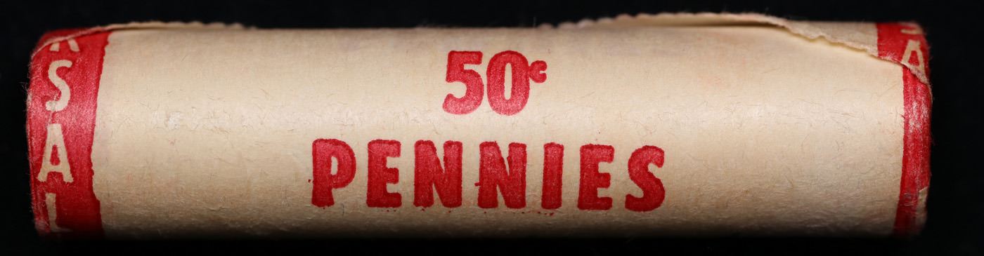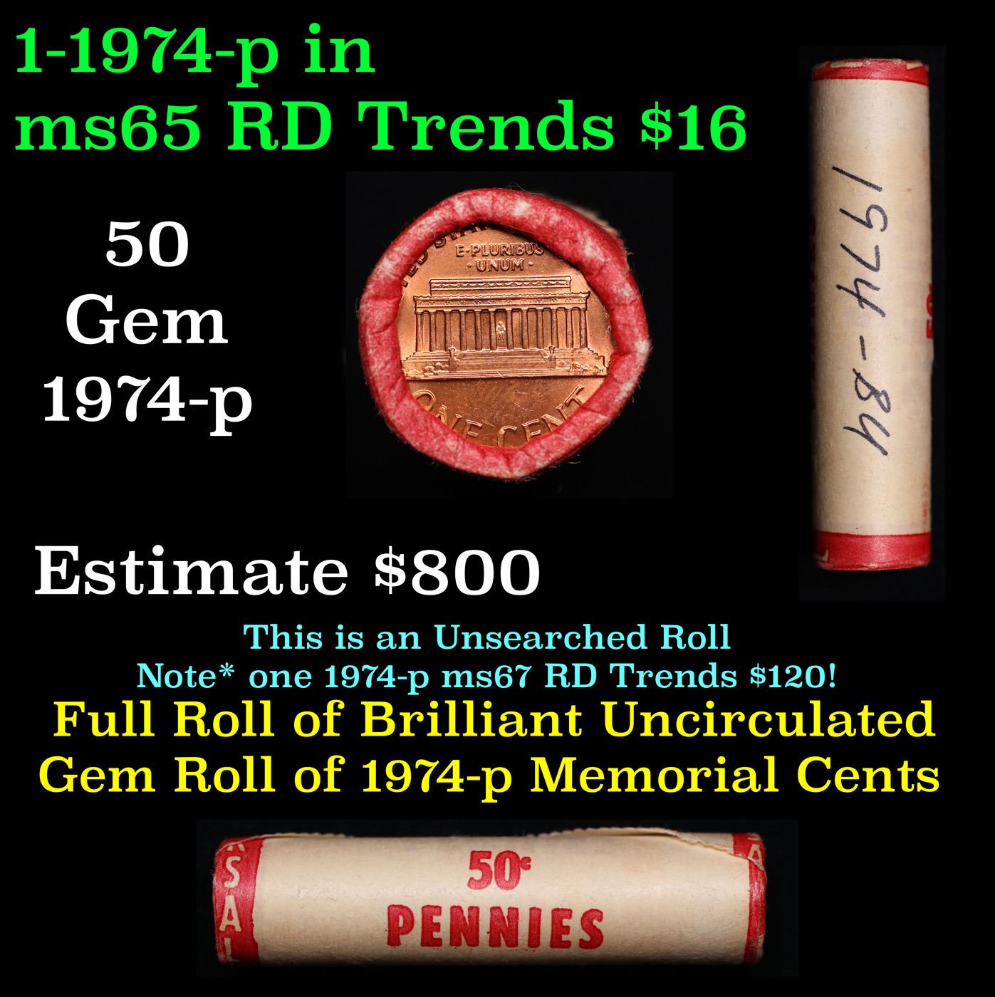 Shotgun Lincoln 1c roll, 1974-p 50 pcs Pennies Wrapper.. A terrific Shotgun roll of Lincoln cents. Most if not all coin should be cherry red.