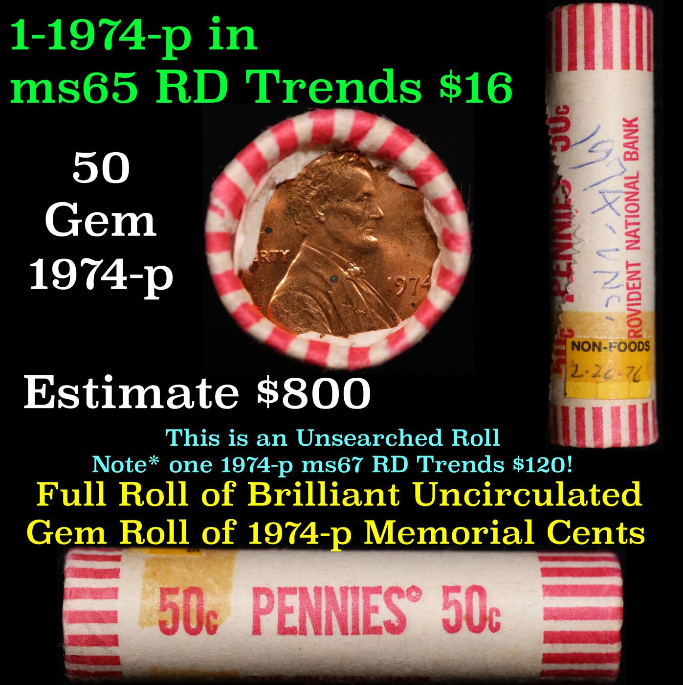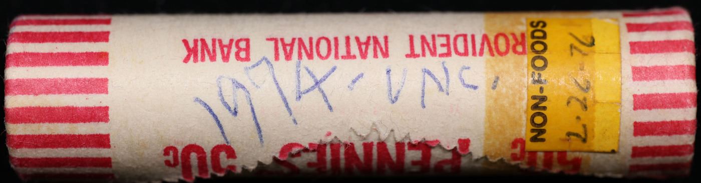 Shotgun Lincoln 1c roll, 1974-p 50 pcs Provident Bank Wrapper.