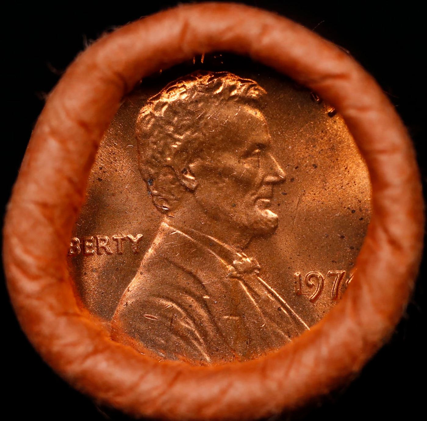 Shotgun Lincoln 1c roll, 1974-p 50 pcs Standard-Johnson Wrapper.. A terrific Shotgun roll of Lincoln cents. Most if not all coin should be cherry red.