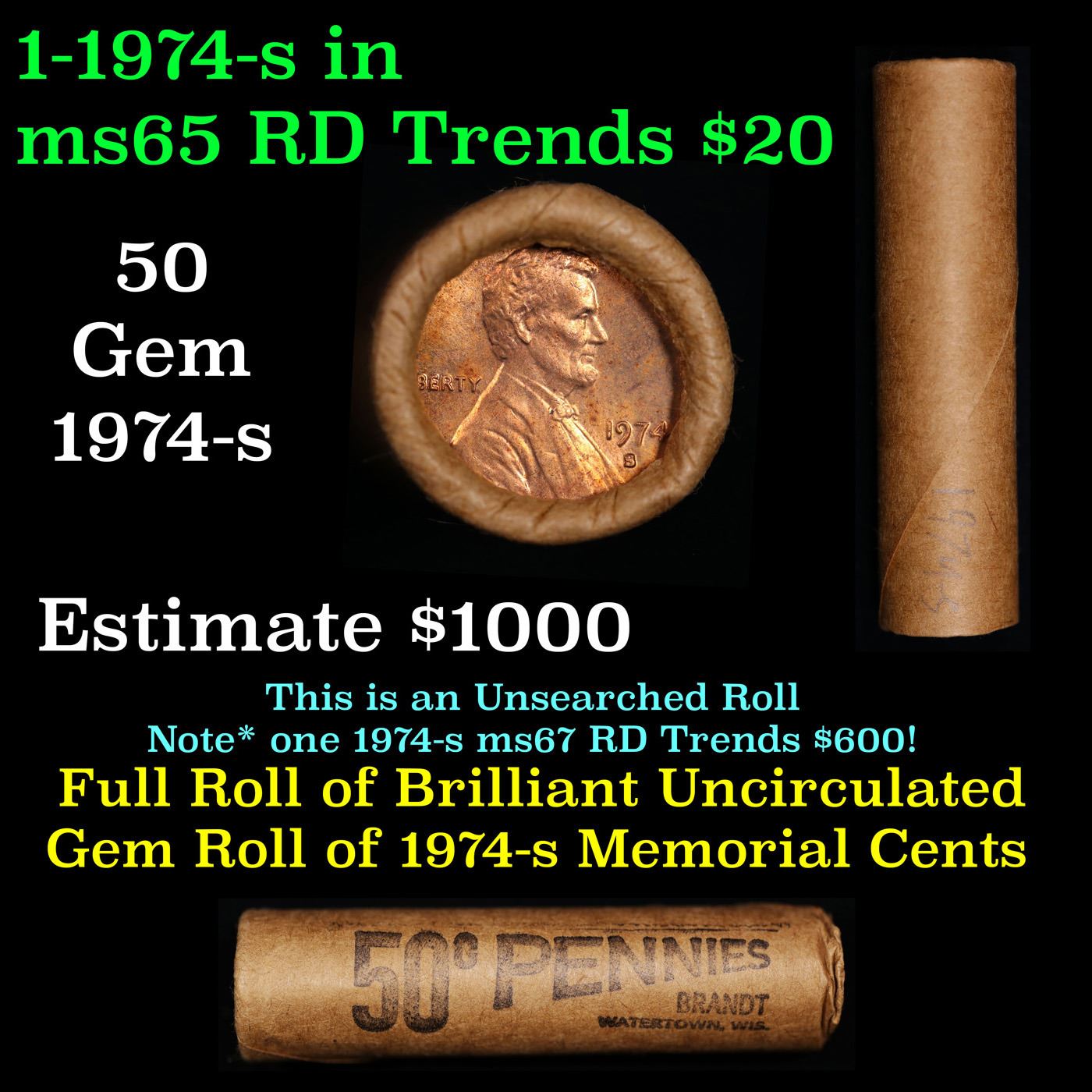 Shotgun Lincoln 1c roll, 1974-s 50 pcs Brandt Wrapper .
