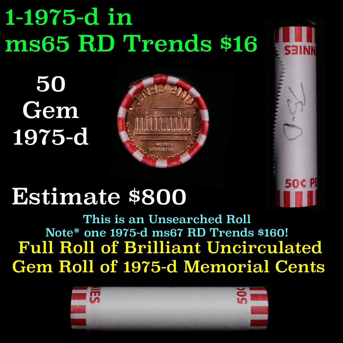 Shotgun Lincoln 1c roll, 1975-d 50 pcs Bank Wrapper.. A terrific Shotgun roll of Lincoln cents. Most if not all coin should be cherry red.