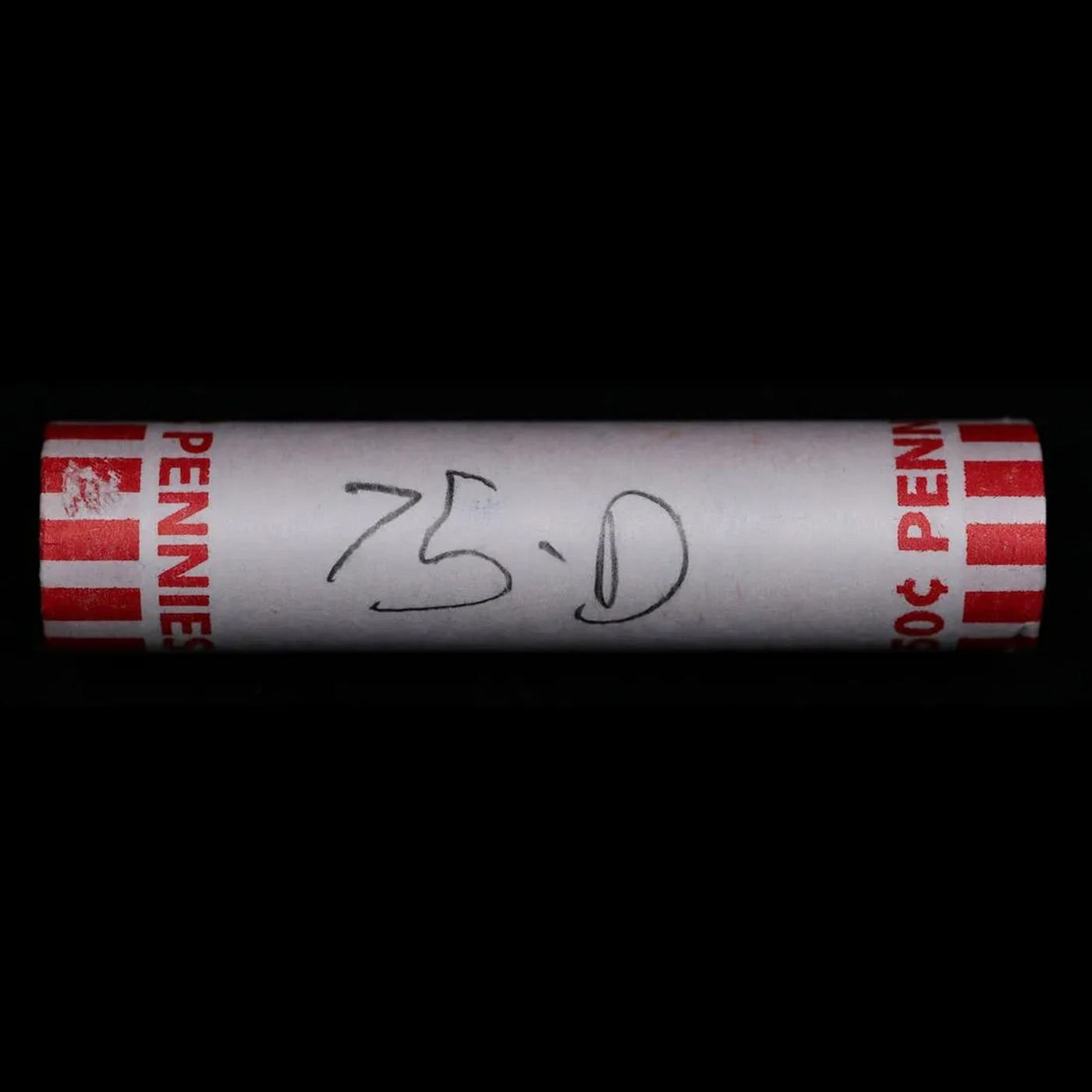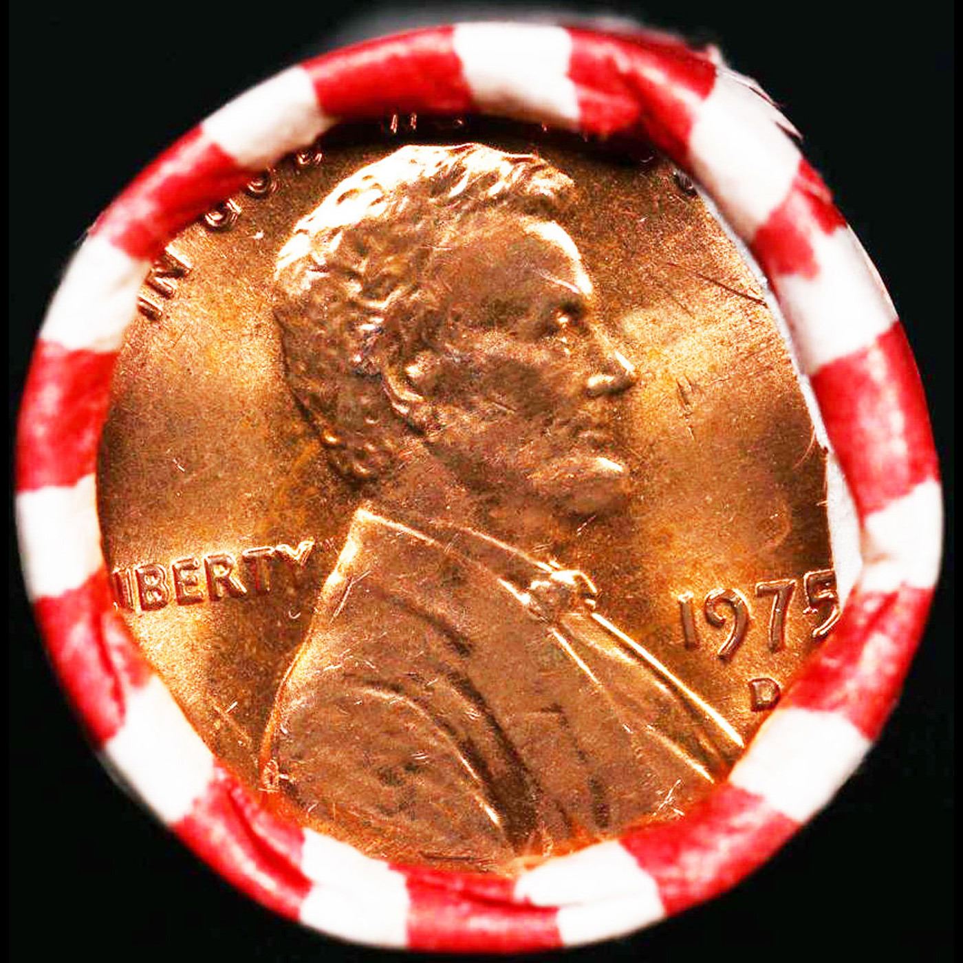 Shotgun Lincoln 1c roll, 1975-d 50 pcs Bank Wrapper.. A terrific Shotgun roll of Lincoln cents. Most if not all coin should be cherry red.