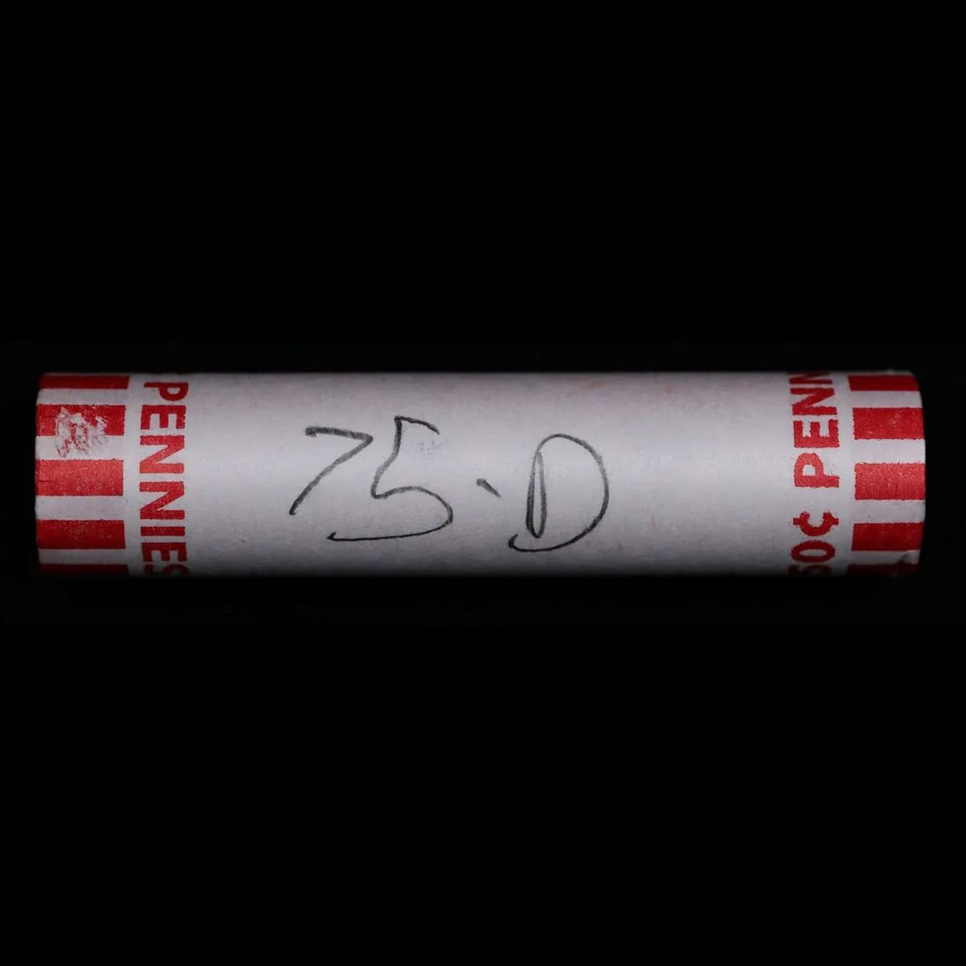 Shotgun Lincoln 1c roll, 1975-d 50 pcs Brandt 50c Wrapper.. A terrific Shotgun roll of Lincoln cents. Most if not all coin should be cherry red.