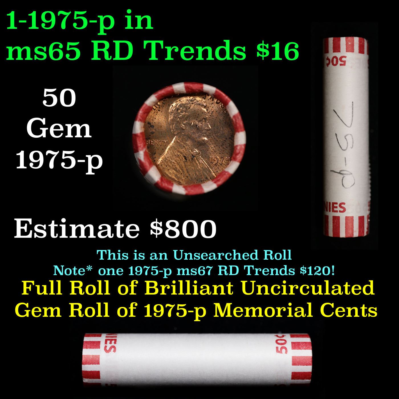 Shotgun Lincoln 1c roll, 1975-p 50 pcs Bank Wrapper.. A terrific Shotgun roll of Lincoln cents. Most if not all coin should be cherry red.