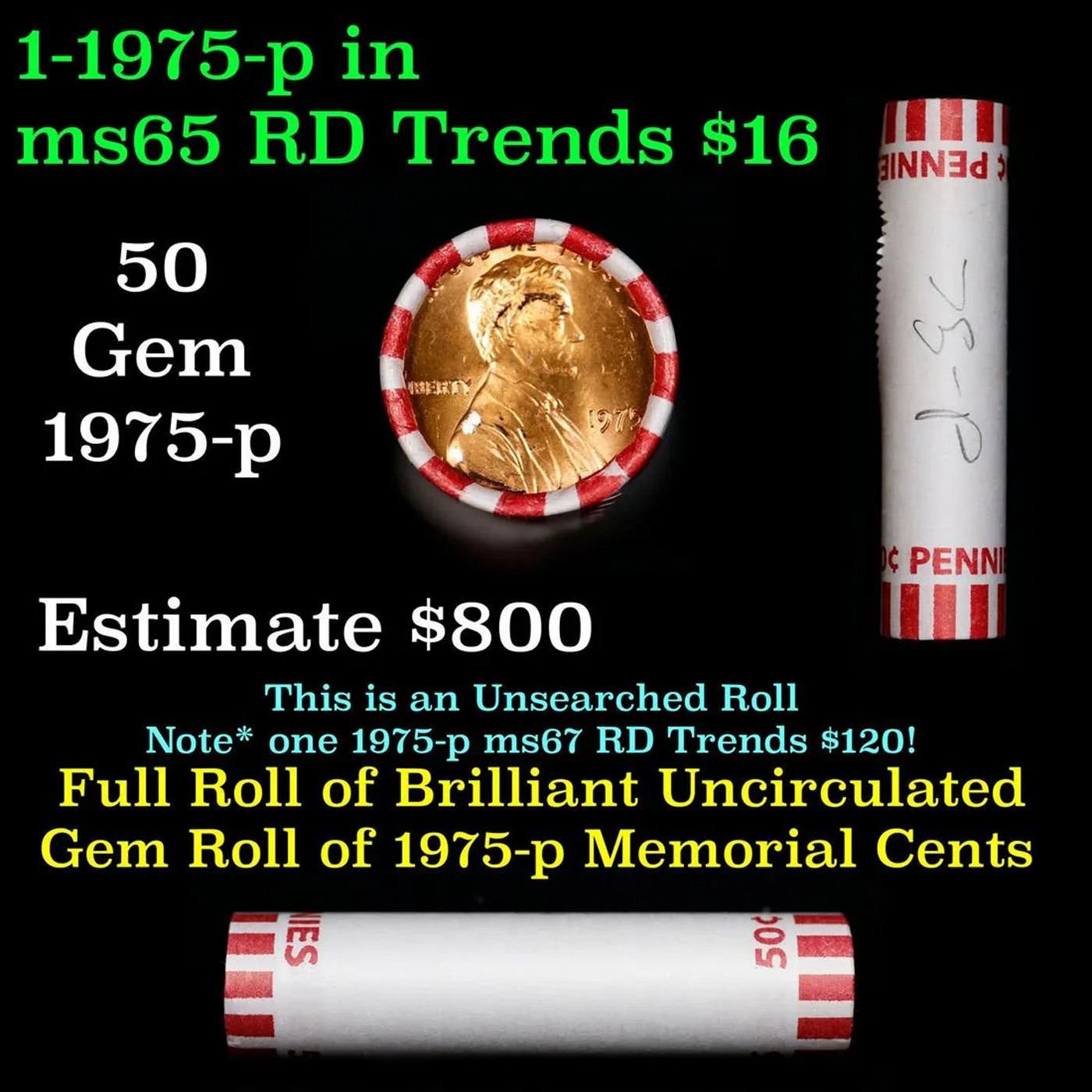 Shotgun Lincoln 1c roll, 1975-p 50 pcs Bank Wrapper.. A terrific Shotgun roll of Lincoln cents. Most if not all coin should be cherry red.