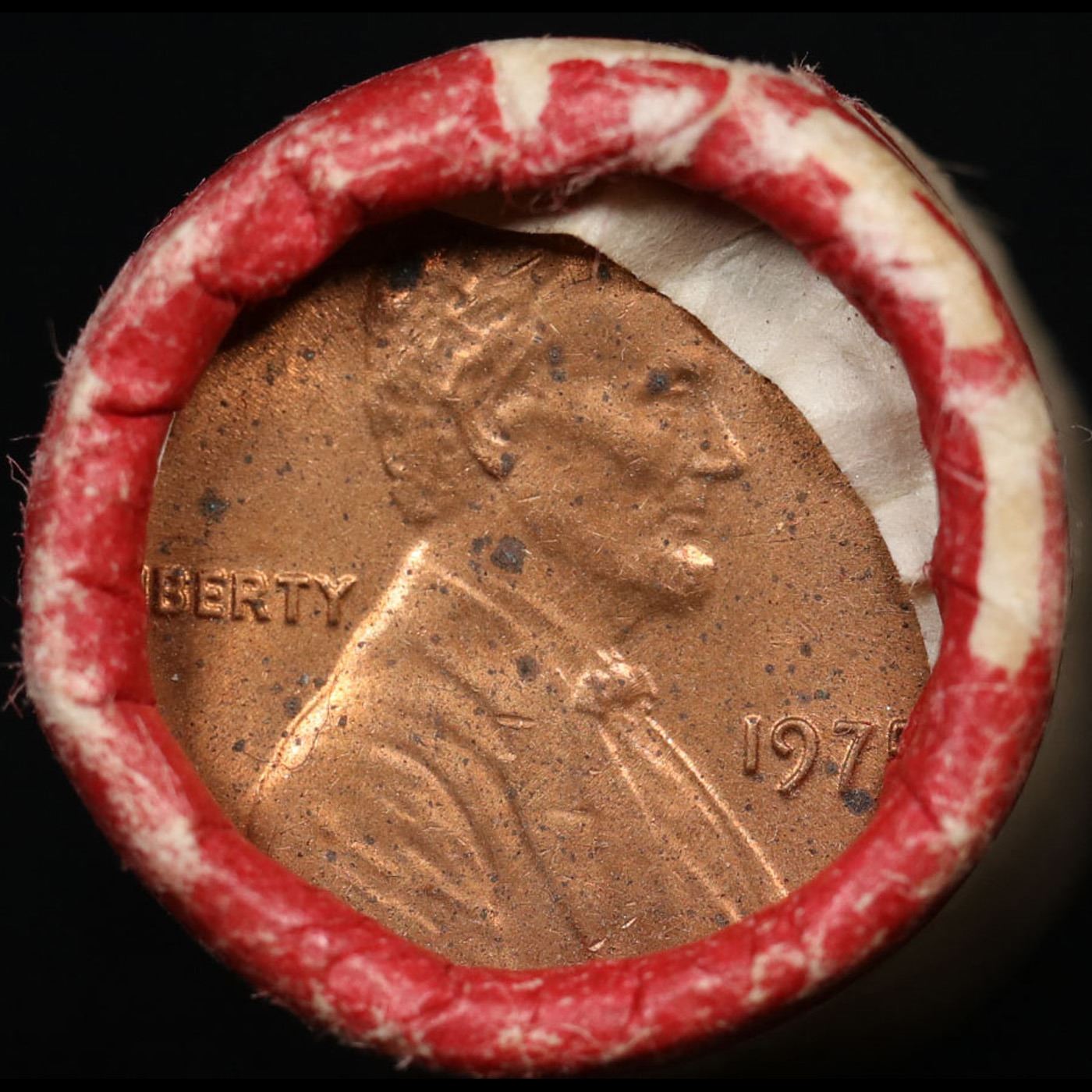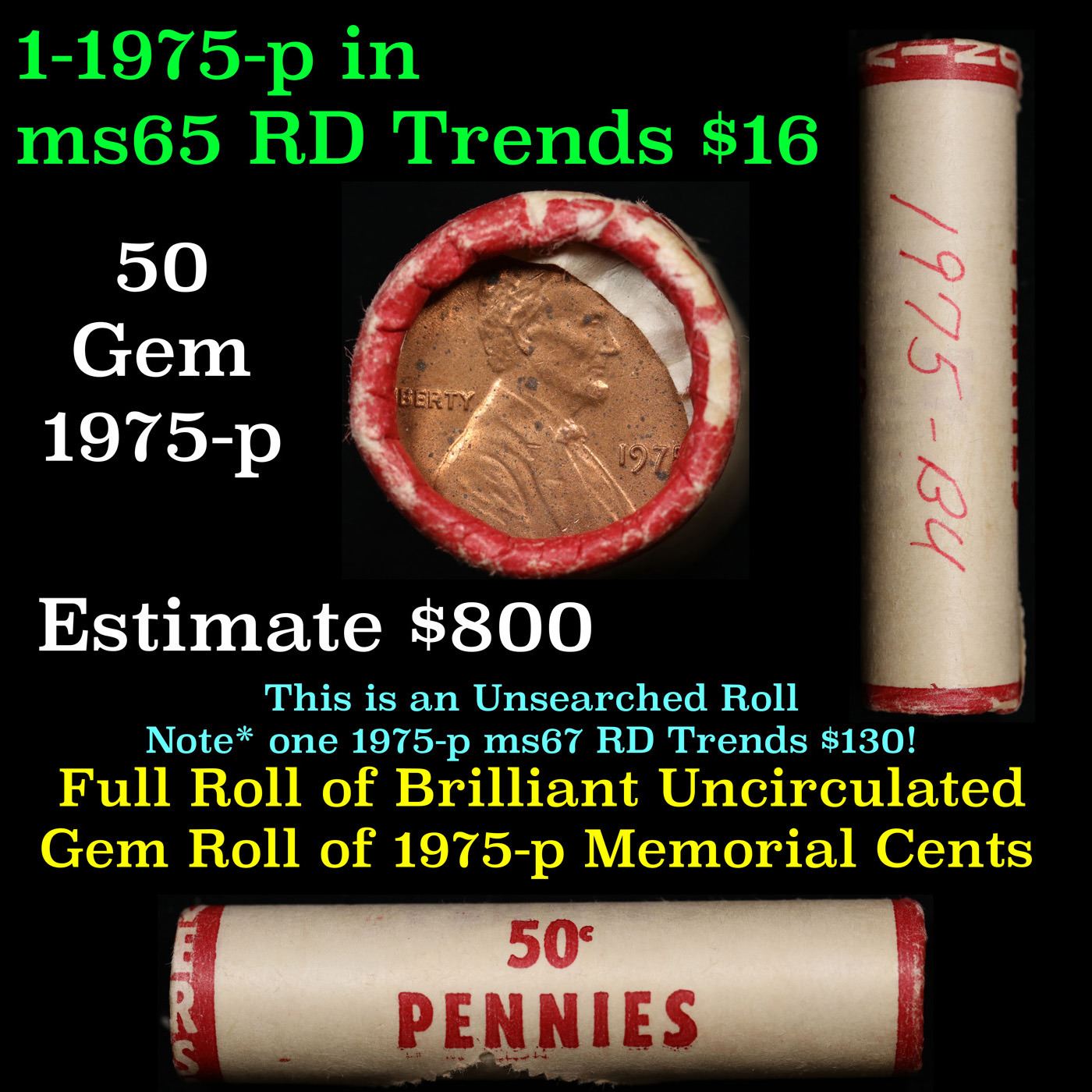 Shotgun Lincoln 1c roll, 1975-p 50 pcs Bank Wrapper.. A terrific Shotgun roll of Lincoln cents. Most if not all coin should be cherry red.