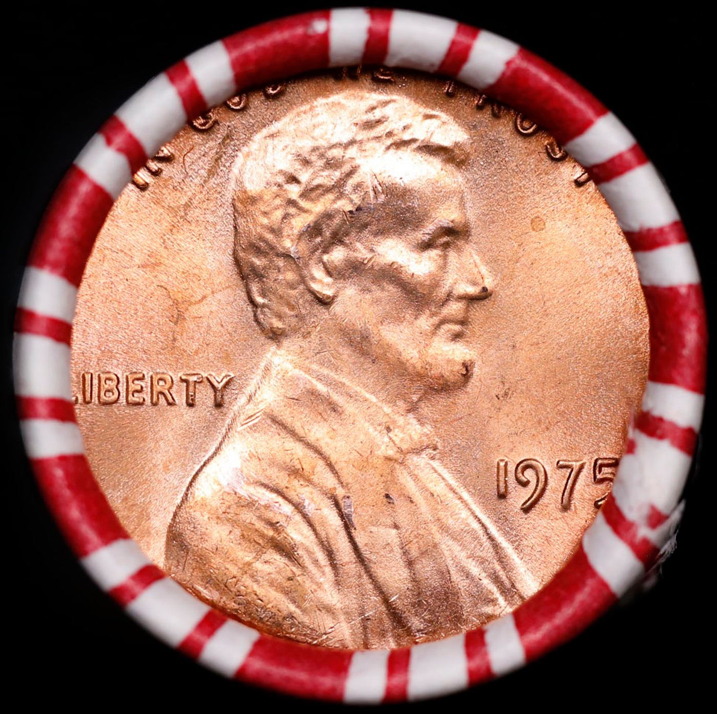 Shotgun Lincoln 1c roll, 1975-p 50 pcs Brandt 50c Wrapper.. A terrific Shotgun roll of Lincoln cents. Most if not all coin should be cherry red.
