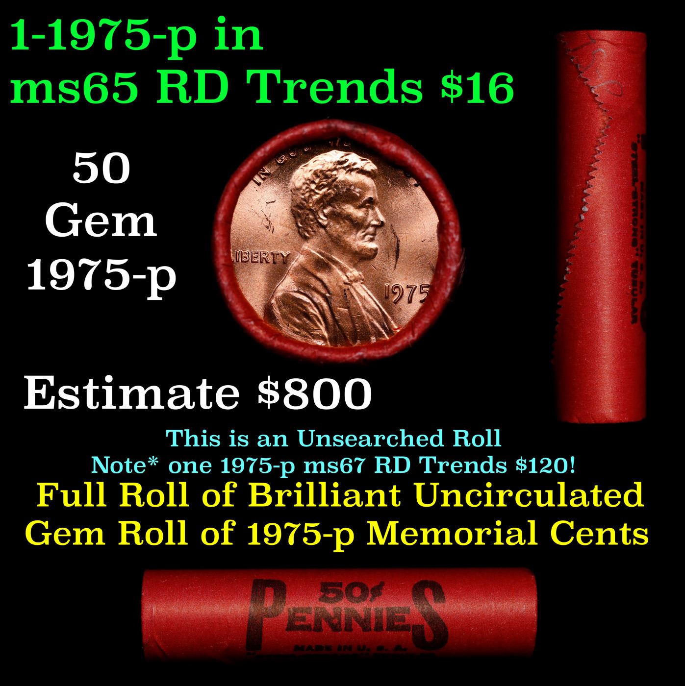 Shotgun Lincoln 1c roll, 1975-p 50 pcs Original Steel-Strong Wrapper.. A terrific Shotgun roll of Lincoln cents. Most if not all coin should be cherry red.