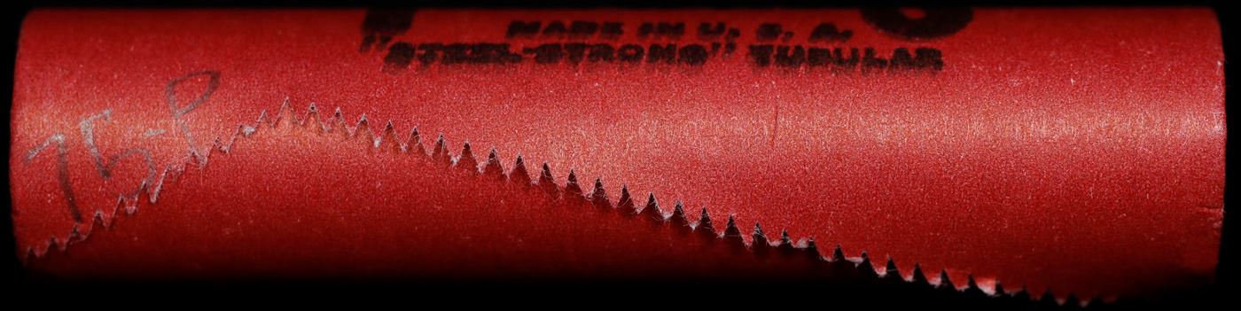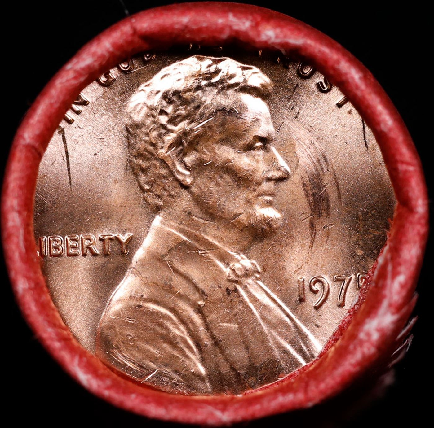 Shotgun Lincoln 1c roll, 1975-p 50 pcs Steel-Strong 50c Wrapper.. A terrific Shotgun roll of Lincoln cents. Most if not all coin should be cherry red.