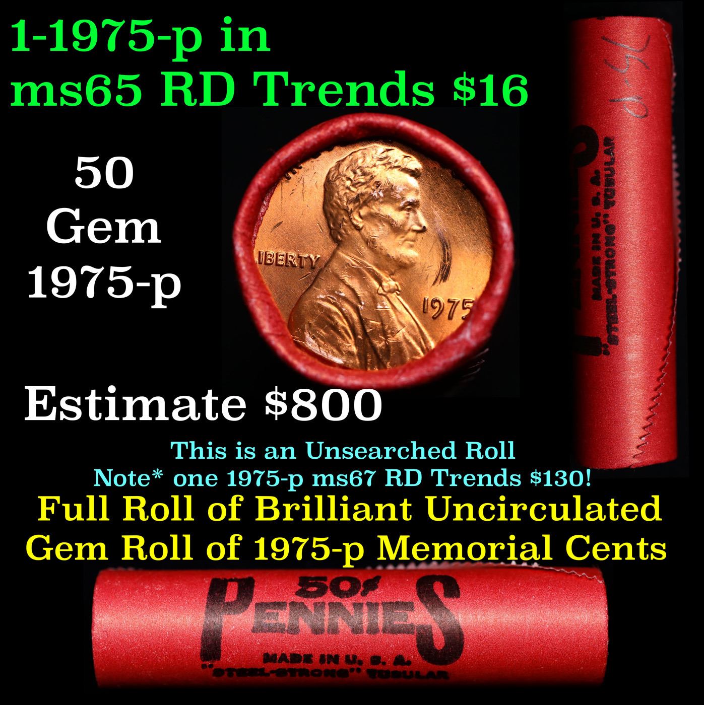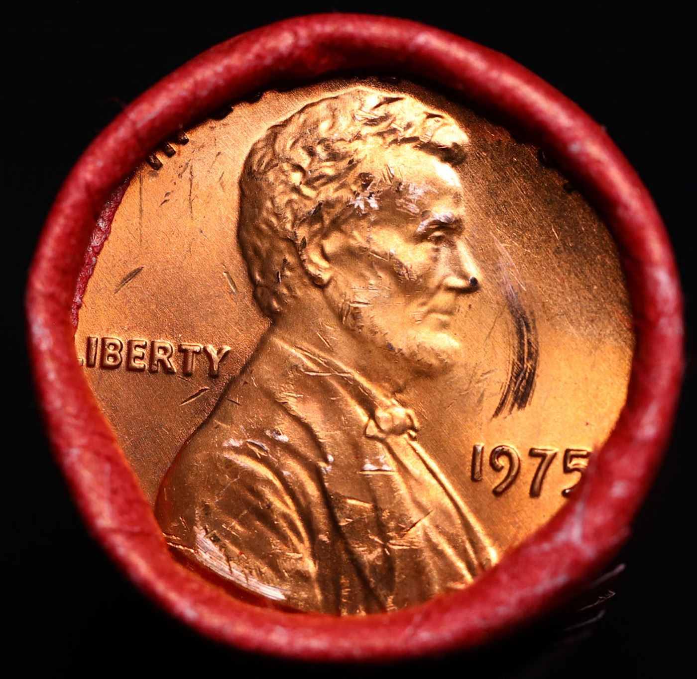 Shotgun Lincoln 1c roll, 1975-p 50 pcs Steel-Strong Wrapper 50c. A terrific Shotgun roll of Lincoln cents in a steel strong wrapper. Most if not all coins should be cherry red.