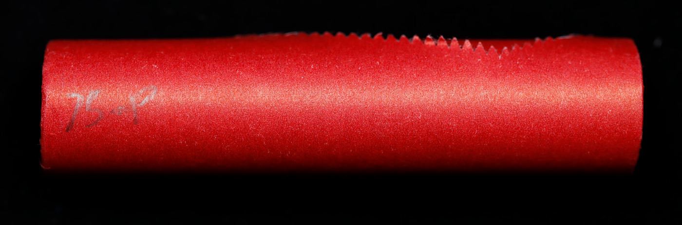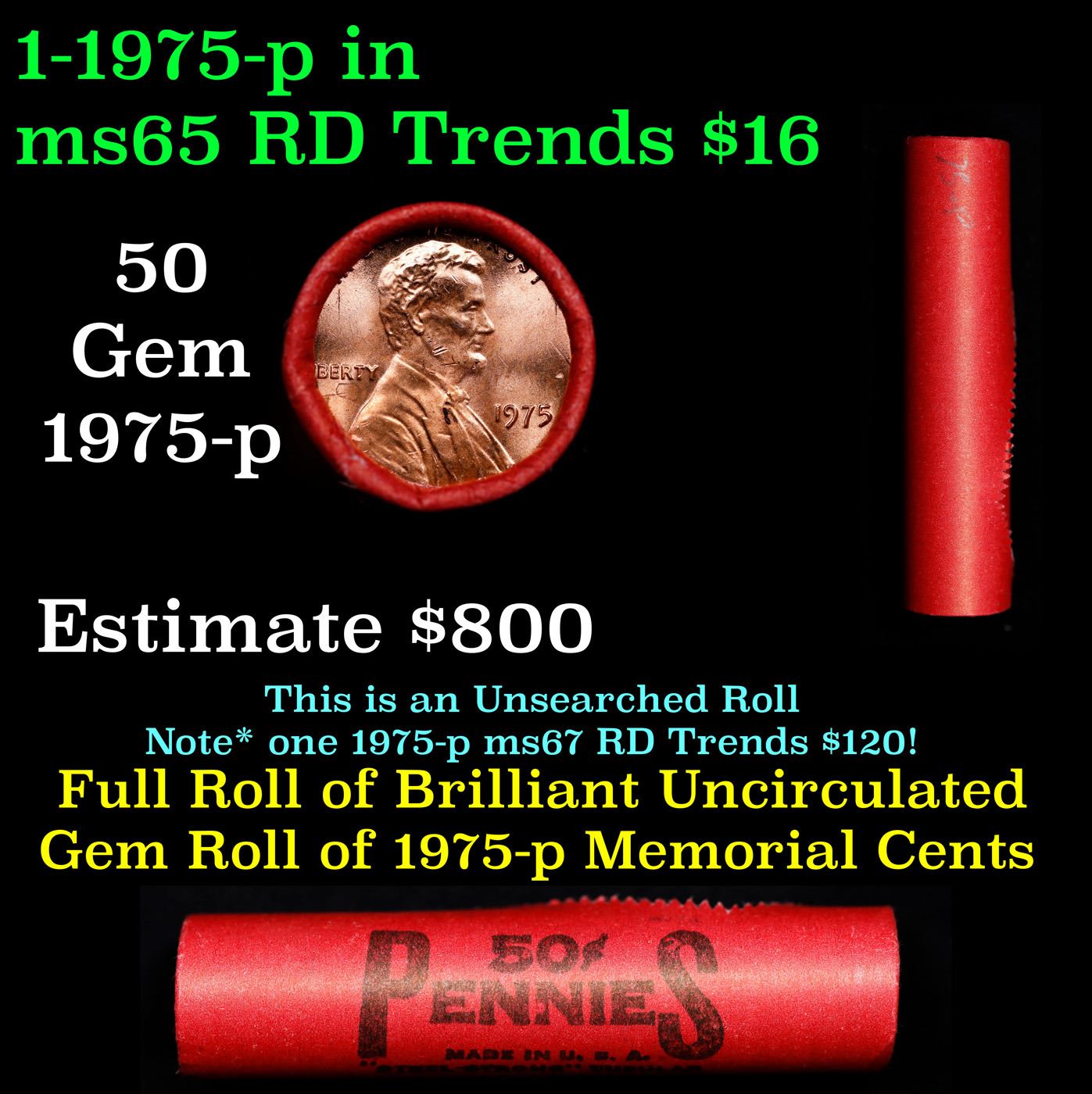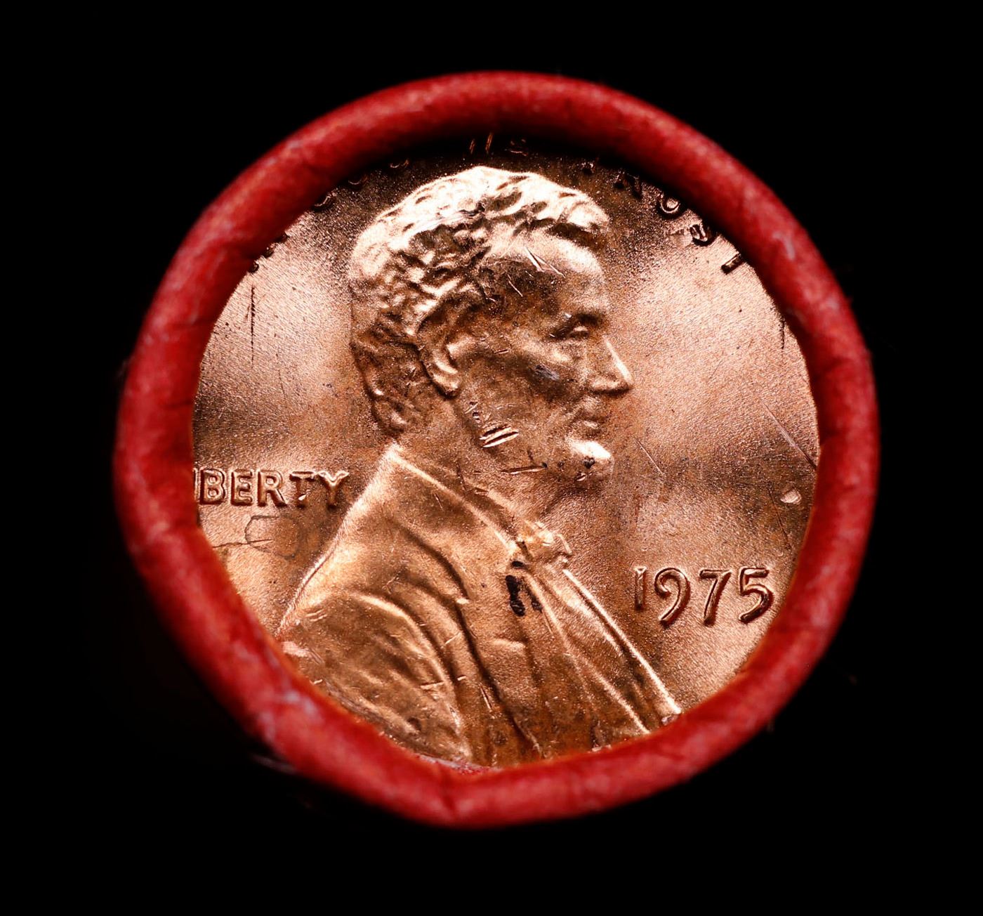 Shotgun Lincoln 1c roll, 1975-p 50 pcs Steel-Strong Wrapper.. A terrific Shotgun roll of Lincoln cents. Most if not all coin should be cherry red.
