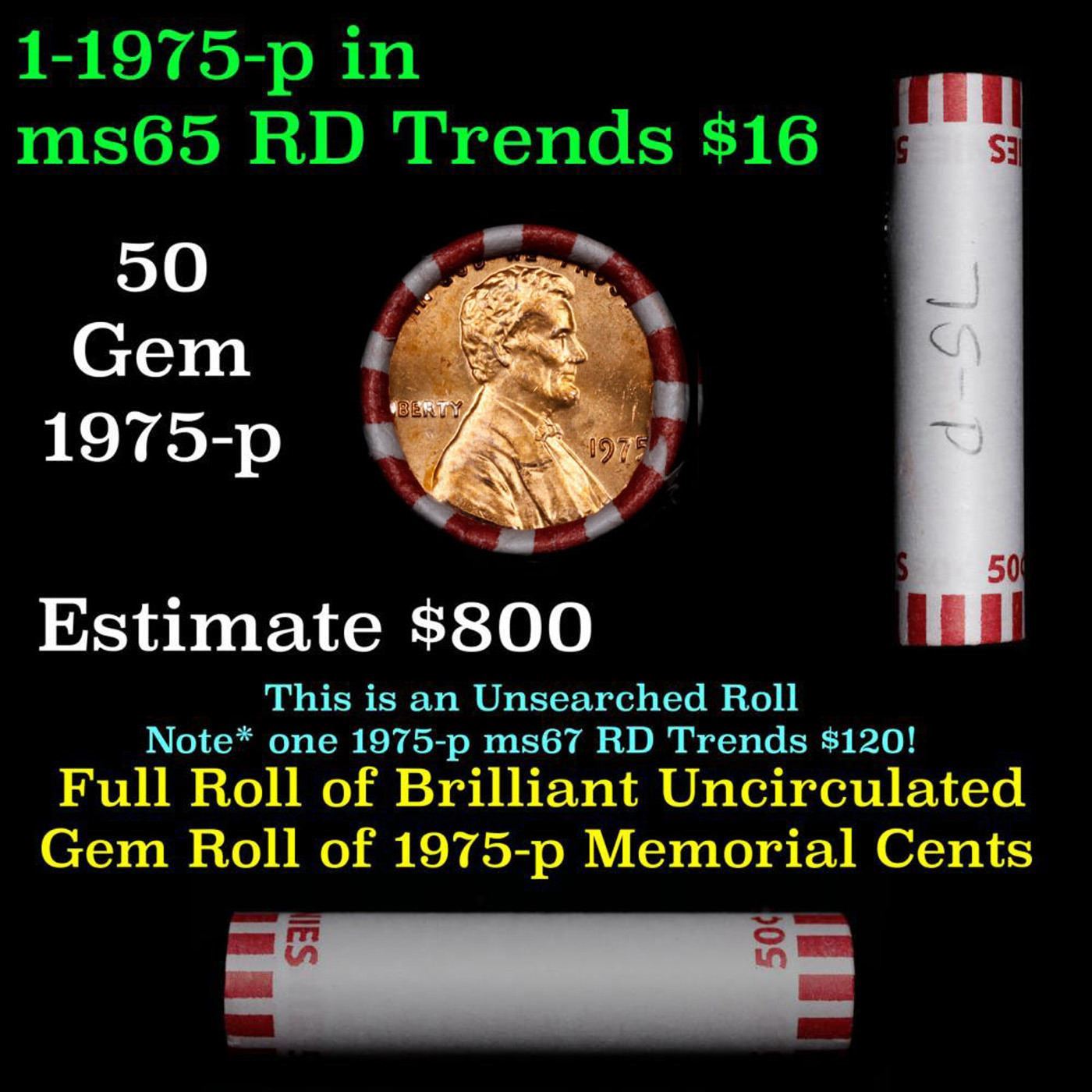 Shotgun Lincoln 1c roll, 1975-p 50 pcs Steel-Strong Wrapper.. A terrific Shotgun roll of Lincoln cents. Most if not all coin should be cherry red.