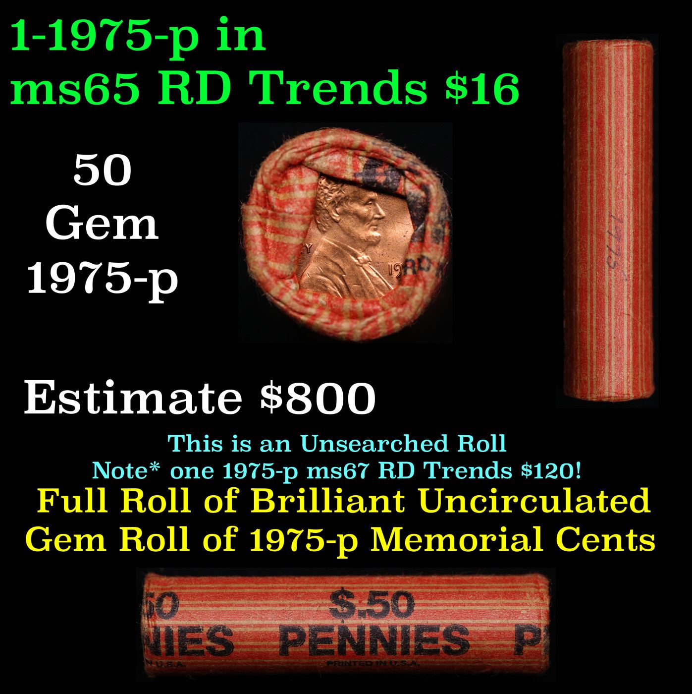 Shotgun Lincoln 1c roll, 1975-p 50 pcs Stripped Wrapper.. A terrific Shotgun roll of Lincoln cents. Most if not all coin should be cherry red.