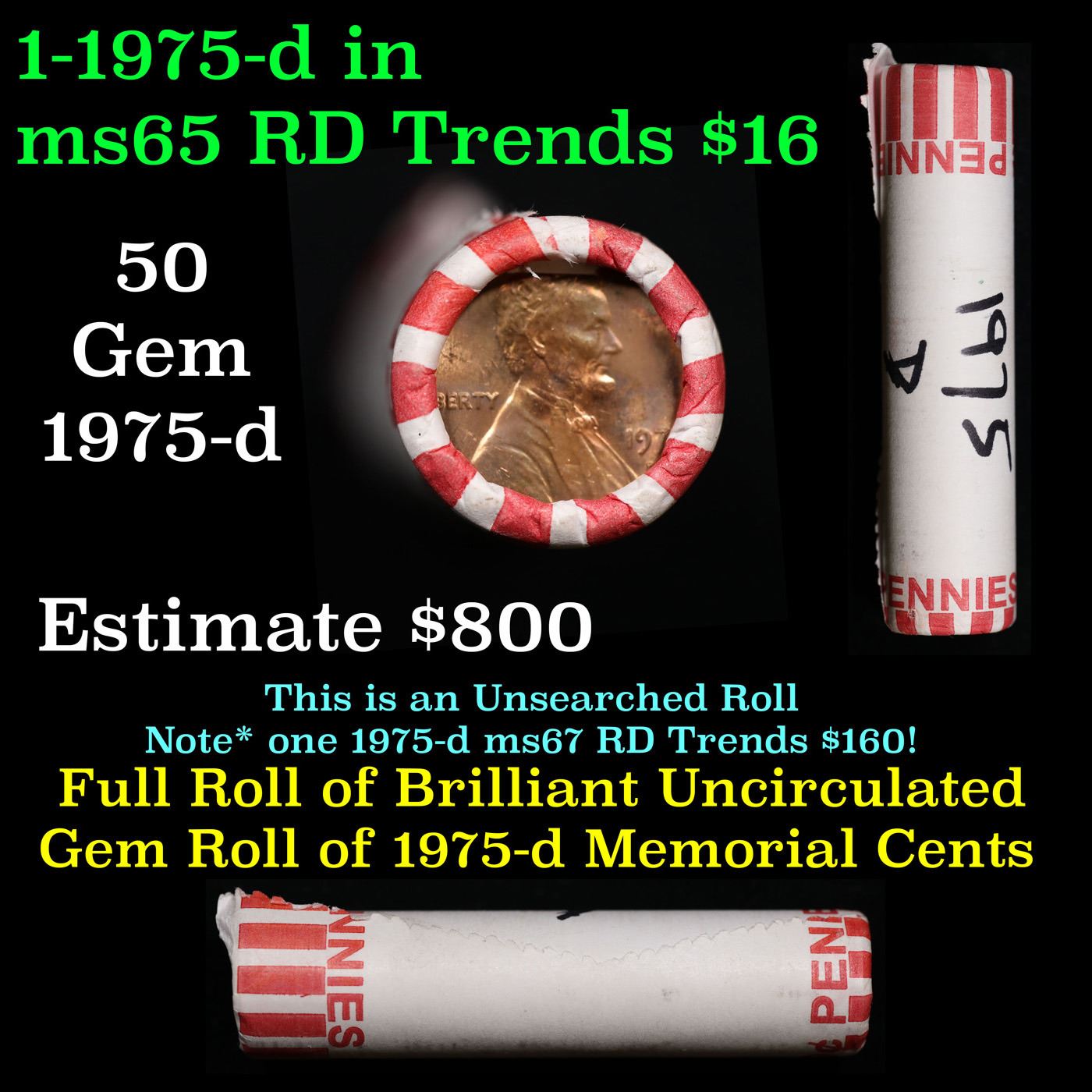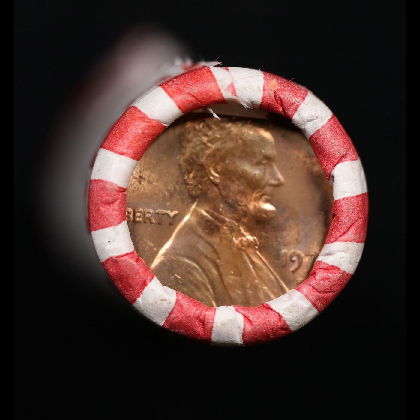 Shotgun Lincoln 1c roll, 1975-p 50 pcs in Wrapper.. A terrific Shotgun roll of Lincoln cents. Most if not all coin should be cherry red. Trends ms65 rd $16