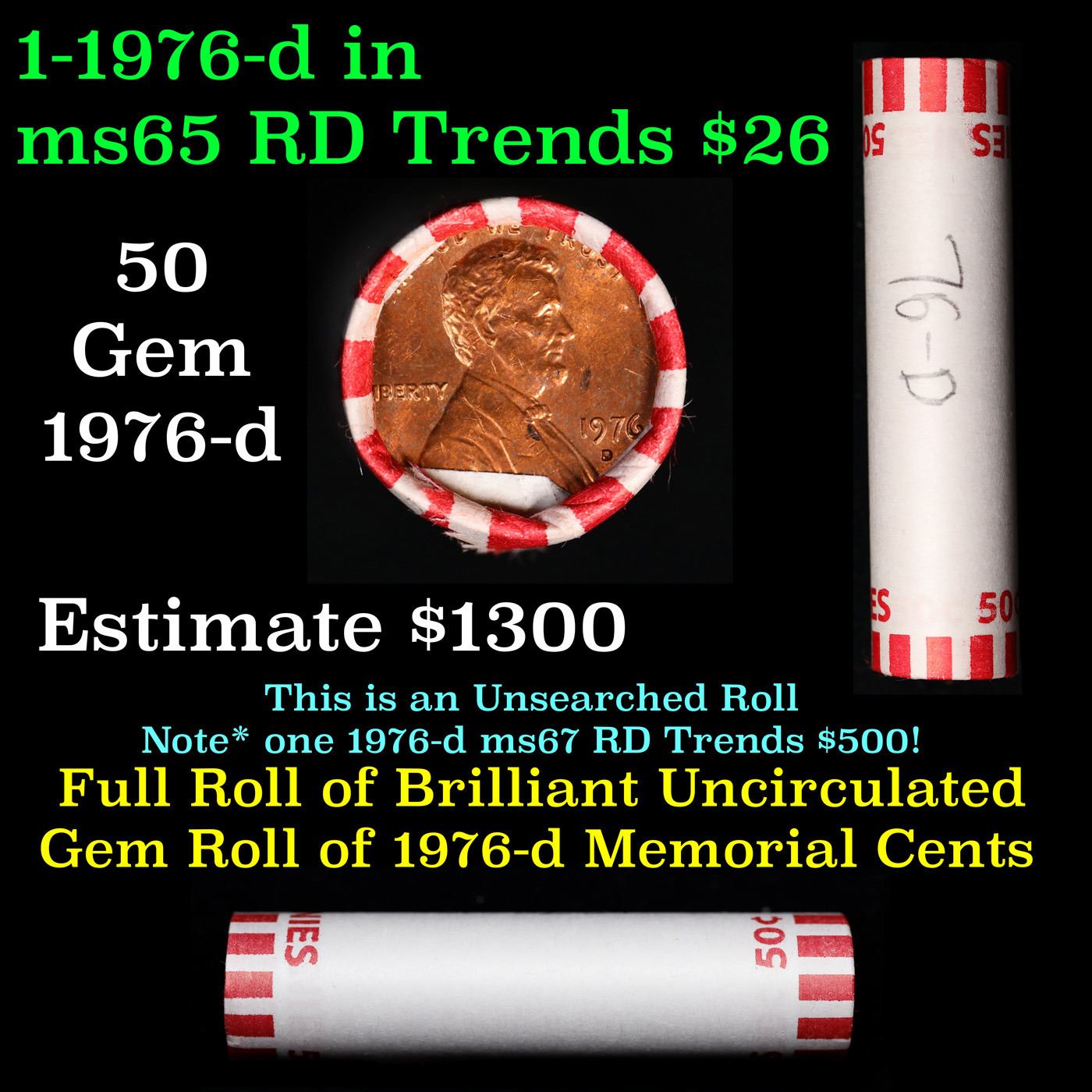 Shotgun Lincoln 1c roll, 1976-d 50 pcs Bank Wrapper.. A terrific Shotgun roll of Lincoln cents. Most if not all coin should be cherry red.