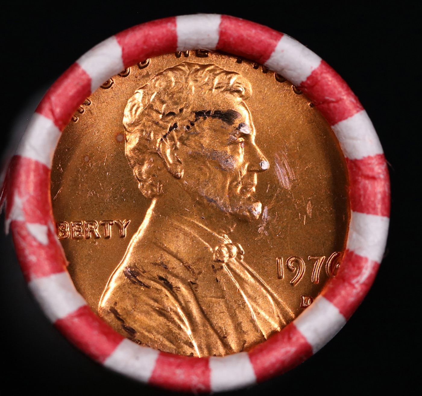 Shotgun Lincoln 1c roll, 1976-d 50 pcs Bank Wrapper.. A terrific Shotgun roll of Lincoln cents. Most if not all coin should be cherry red.