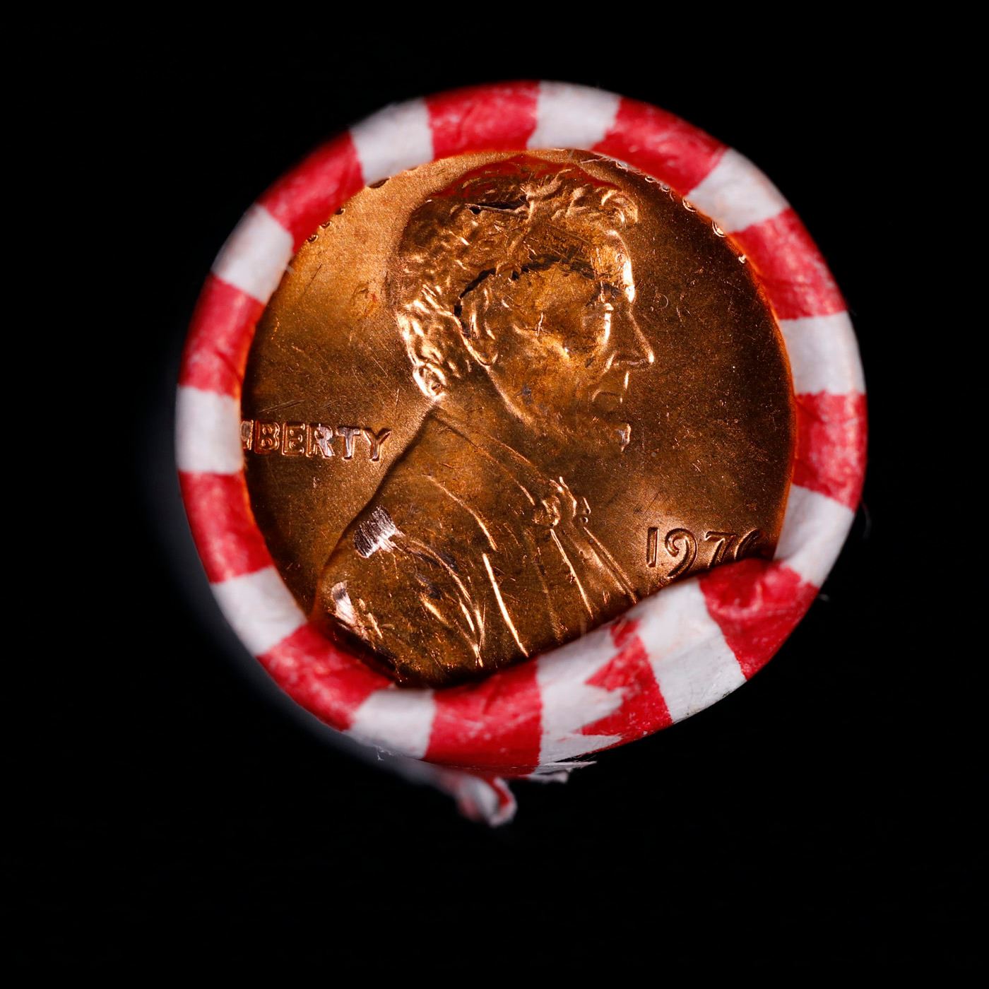 Shotgun Lincoln 1c roll, 1976-p 50 pcs Bank Wrapper.. A terrific Shotgun roll of Lincoln cents. Most if not all coin should be cherry red.