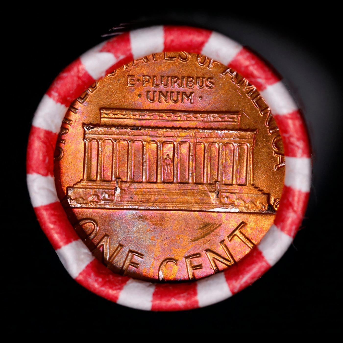 Shotgun Lincoln 1c roll, 1976-p 50 pcs Bank Wrapper.. A terrific Shotgun roll of Lincoln cents. Most if not all coin should be cherry red.