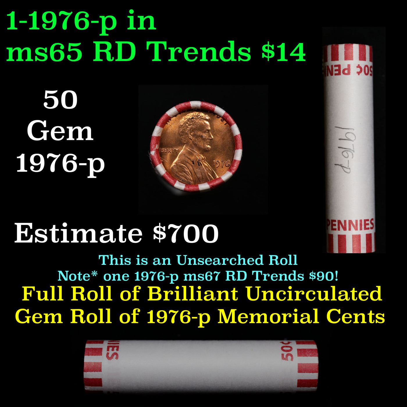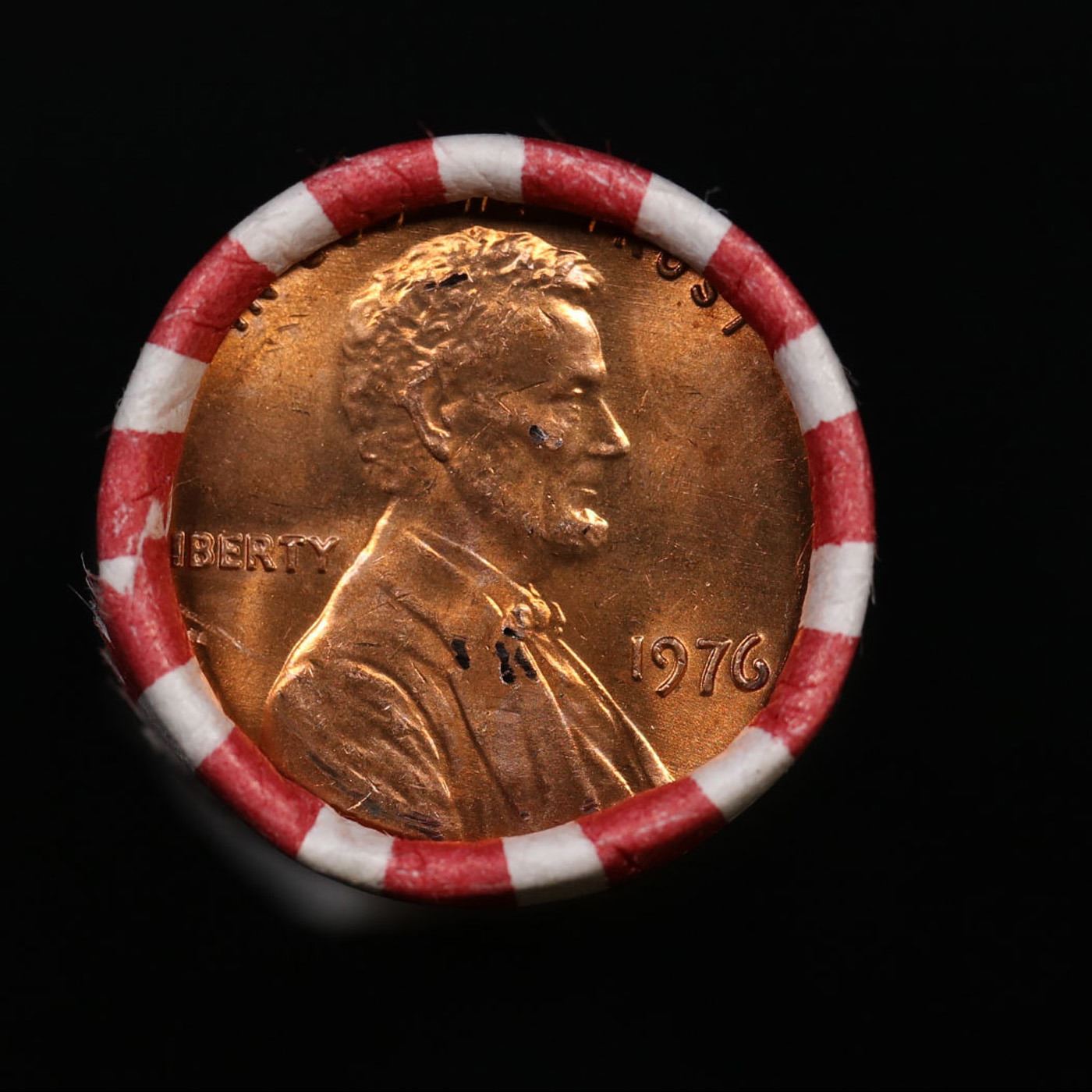 Shotgun Lincoln 1c roll, 1976-p 50 pcs Bank Wrapper.. A terrific Shotgun roll of Lincoln cents. Most if not all coin should be cherry red.