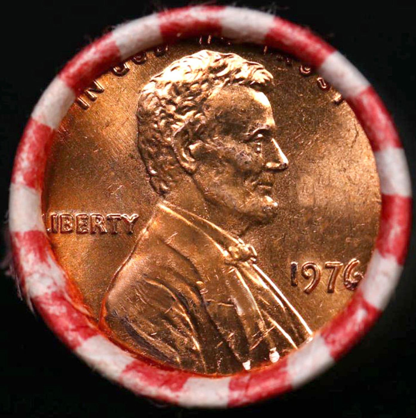 Shotgun Lincoln 1c roll, 1976-p 50 pcs Bank Wrapper.. A terrific Shotgun roll of Lincoln cents. Most if not all coin should be cherry red.