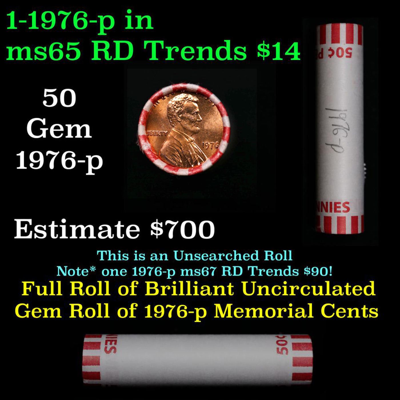 Shotgun Lincoln 1c roll, 1976-p 50 pcs Bank Wrapper.. A terrific Shotgun roll of Lincoln cents. Most if not all coin should be cherry red.